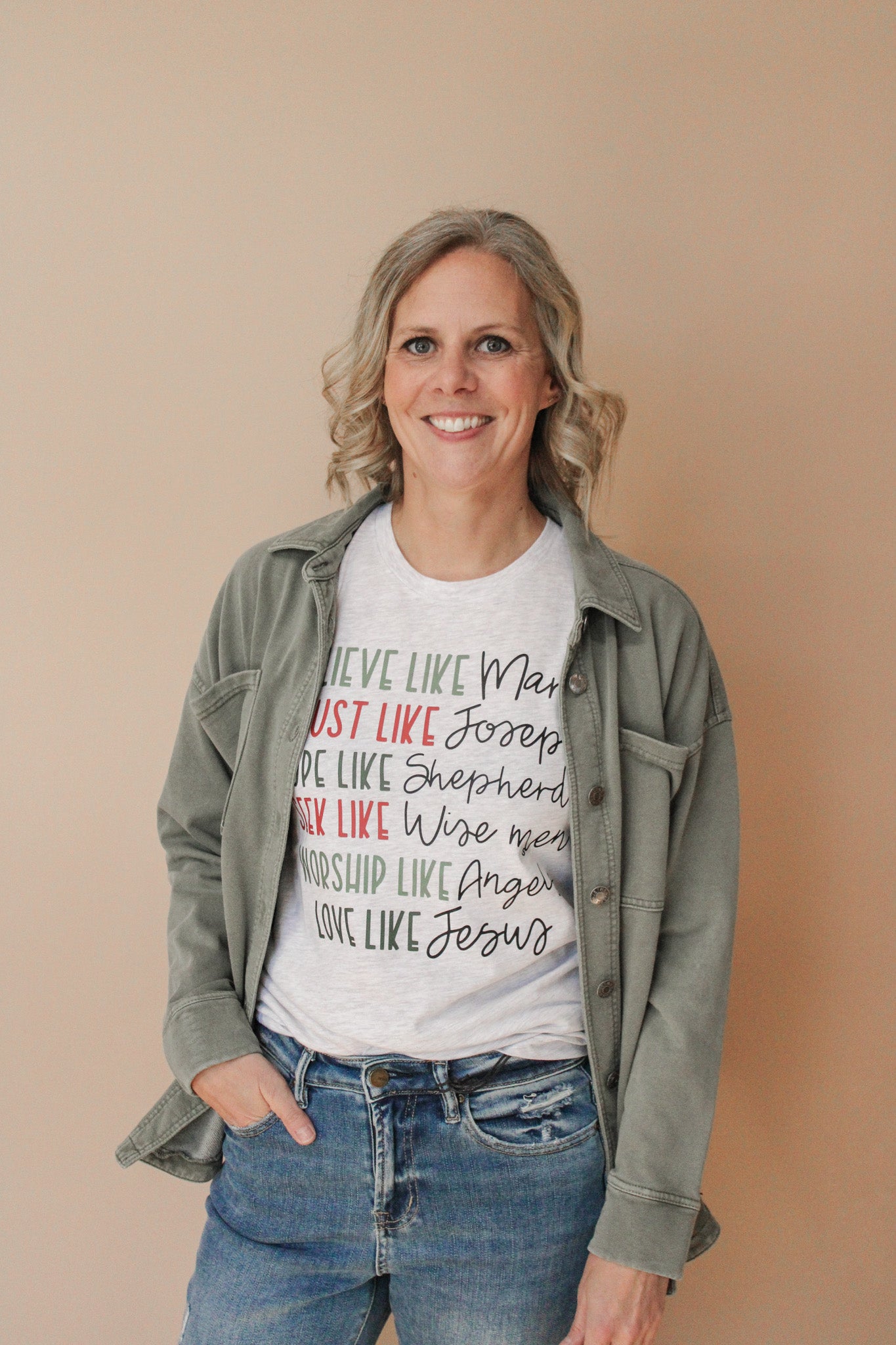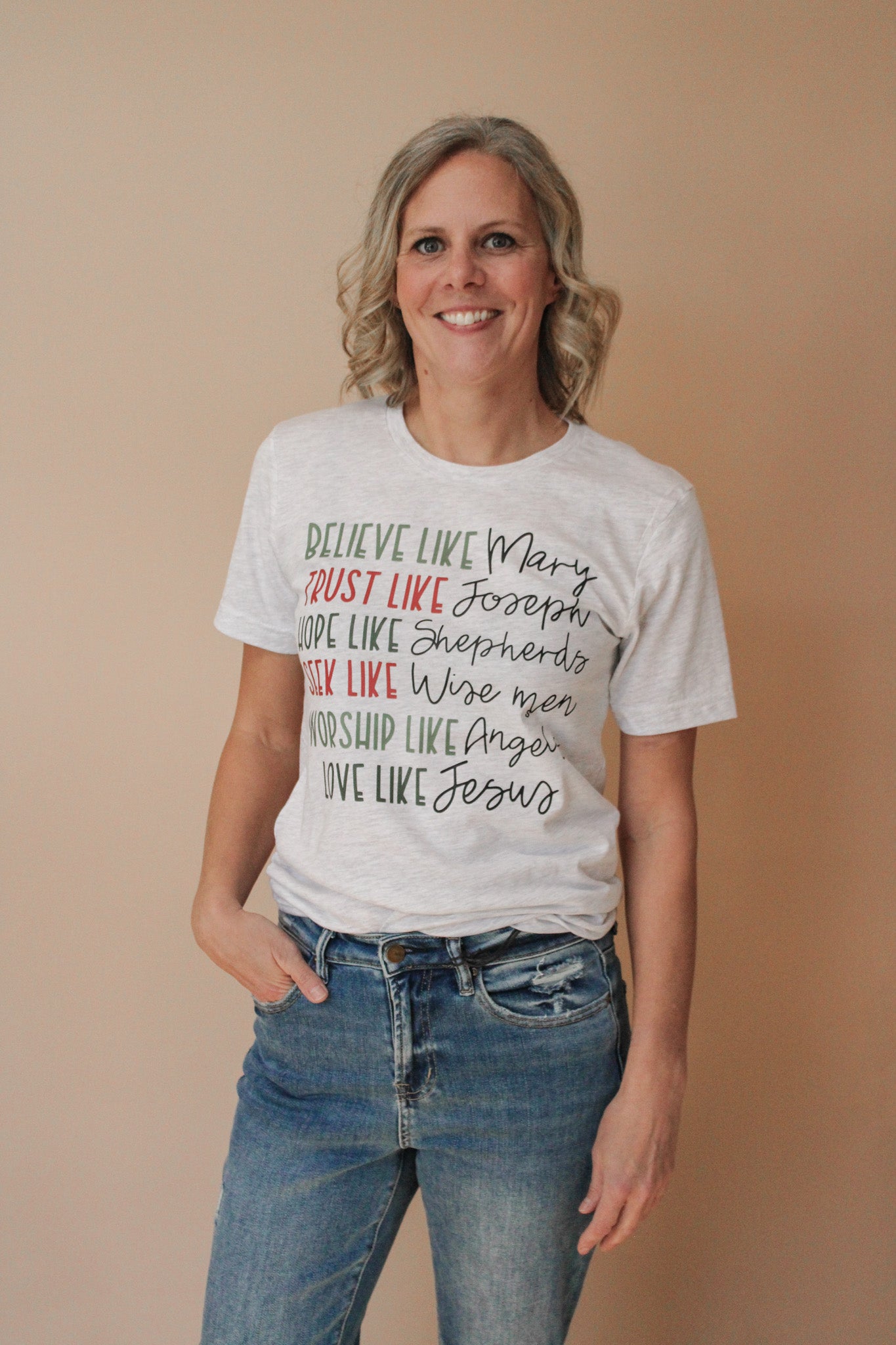 BELIEVE LIKE MARY REG/CURVY GRAPHIC TEE