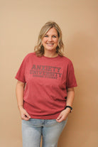 ANXIETY UNIVERSITY REG/CURVY GRAPHIC TEE