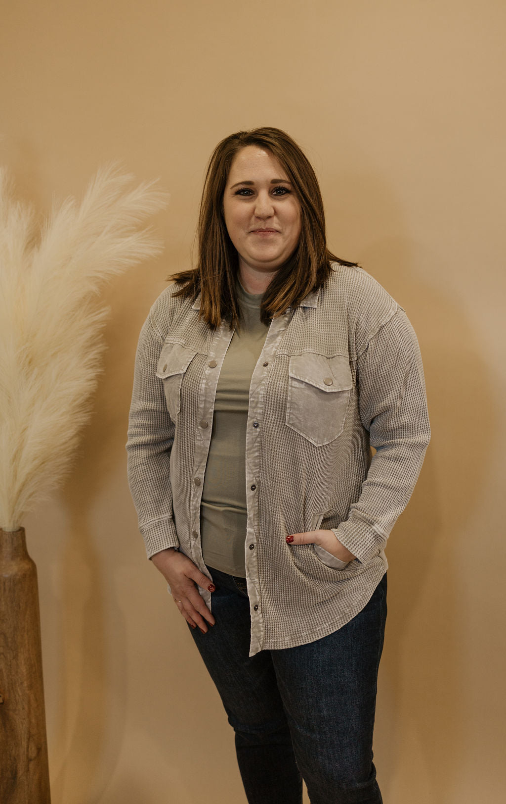 KAYCIE WAFFLE KNIT MINERAL WASHED BUTTON DOWN