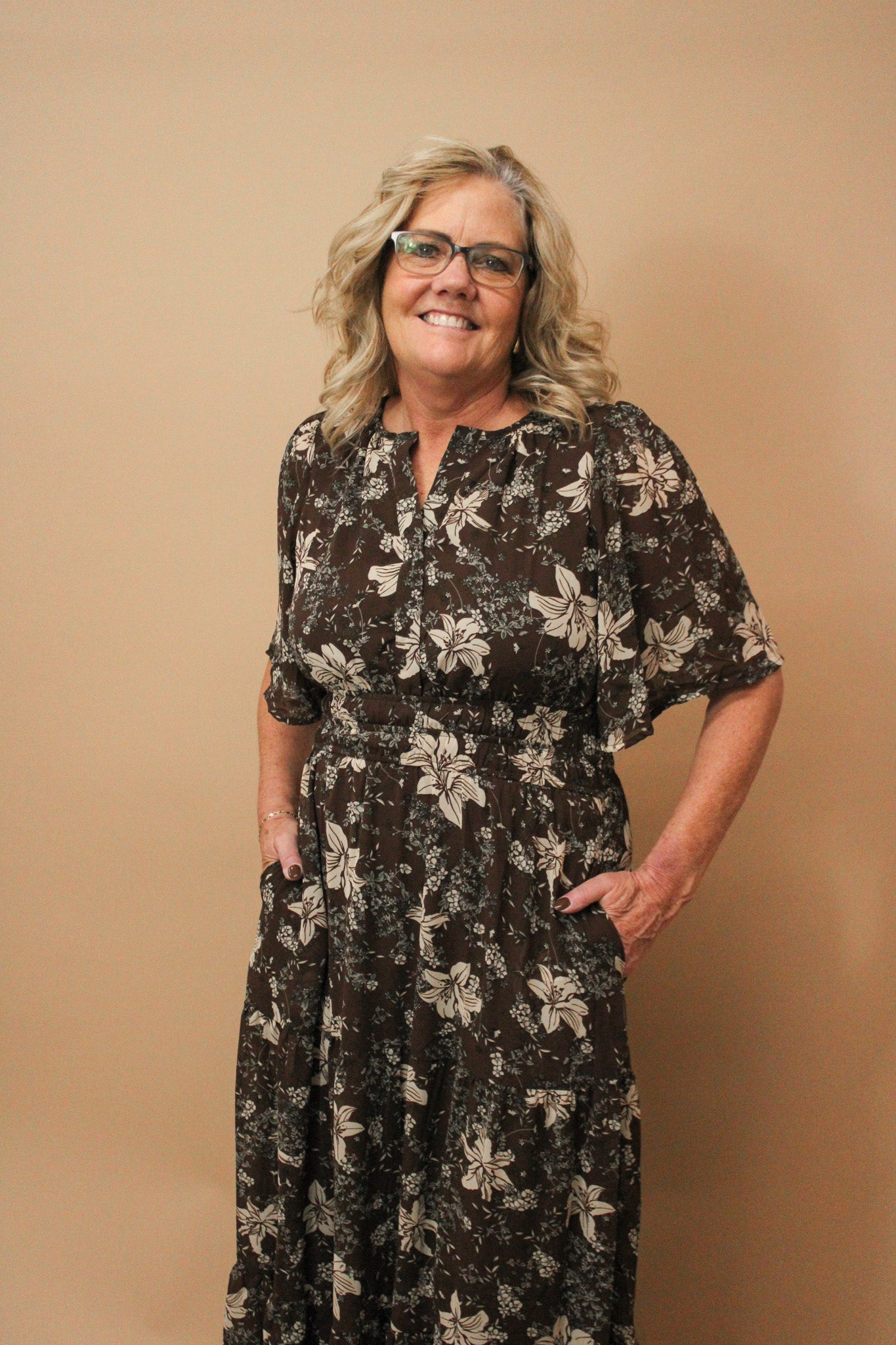 Step into effortless charm with the Jaylie Reg/Curvy Floral Maxi Dress. Crafted from 100% polyester, this lightweight dress features half flutter sleeves and a flattering tiered design. Fully lined for comfort, it also includes convenient pockets to keep your essentials close. Perfect for twirling through sunny days or casual nights out, this playful maxi adds flow and fun to your wardrobe.