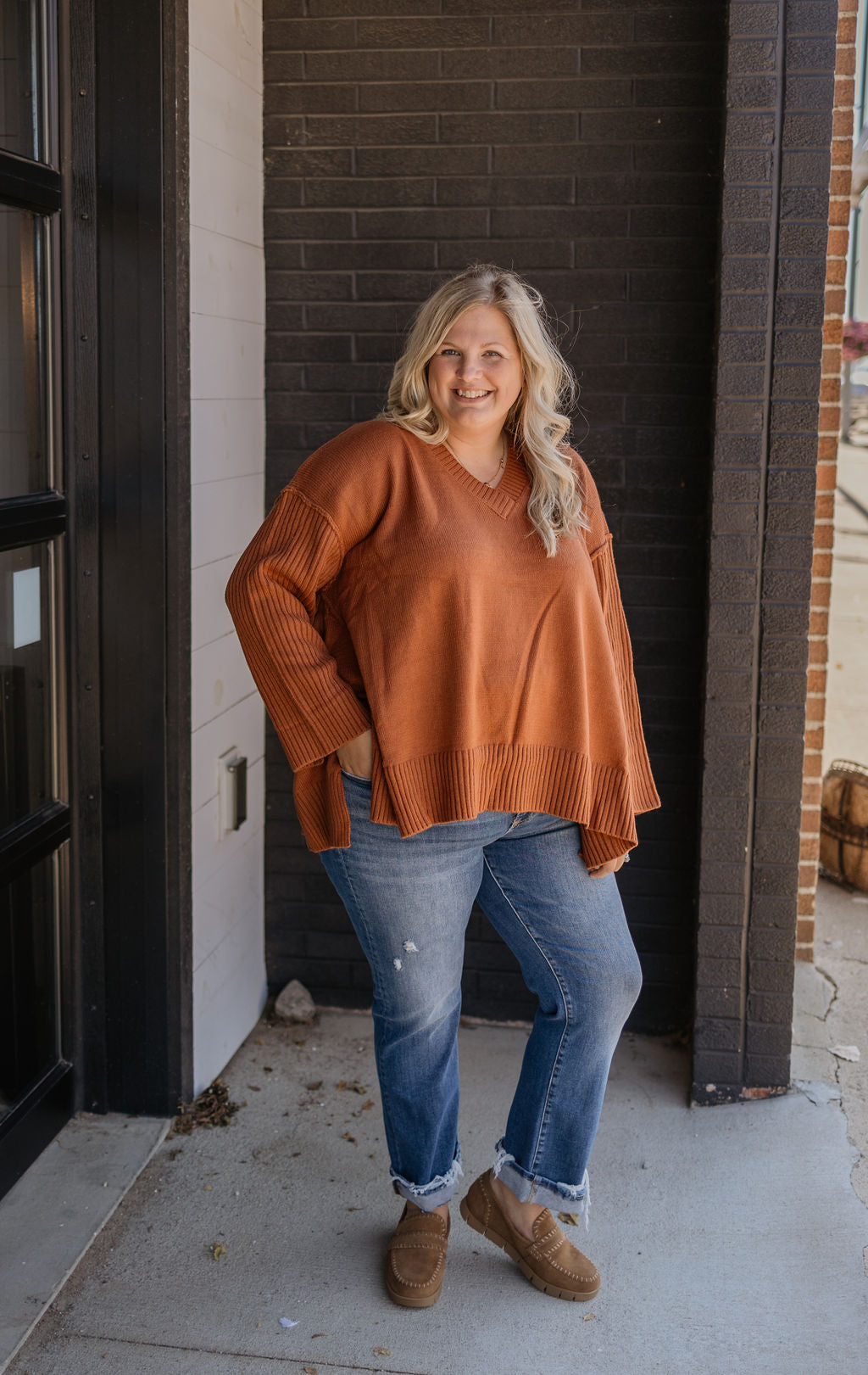 Cozy up in the breathable comfort of the Solie Curvy Oversized Sweater. Its v-neck and long sleeves offer a flattering fit, while the ribbed design and loose fit provide a stylish and relaxed look. Perfect for staying warm and fashionable all season long!