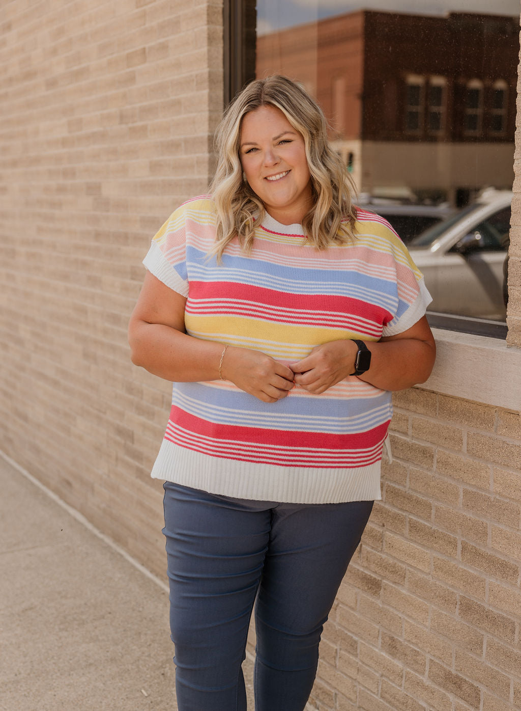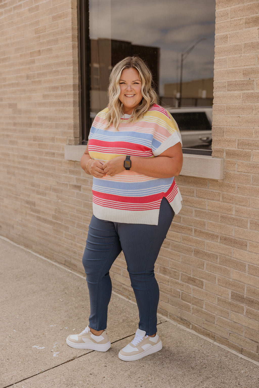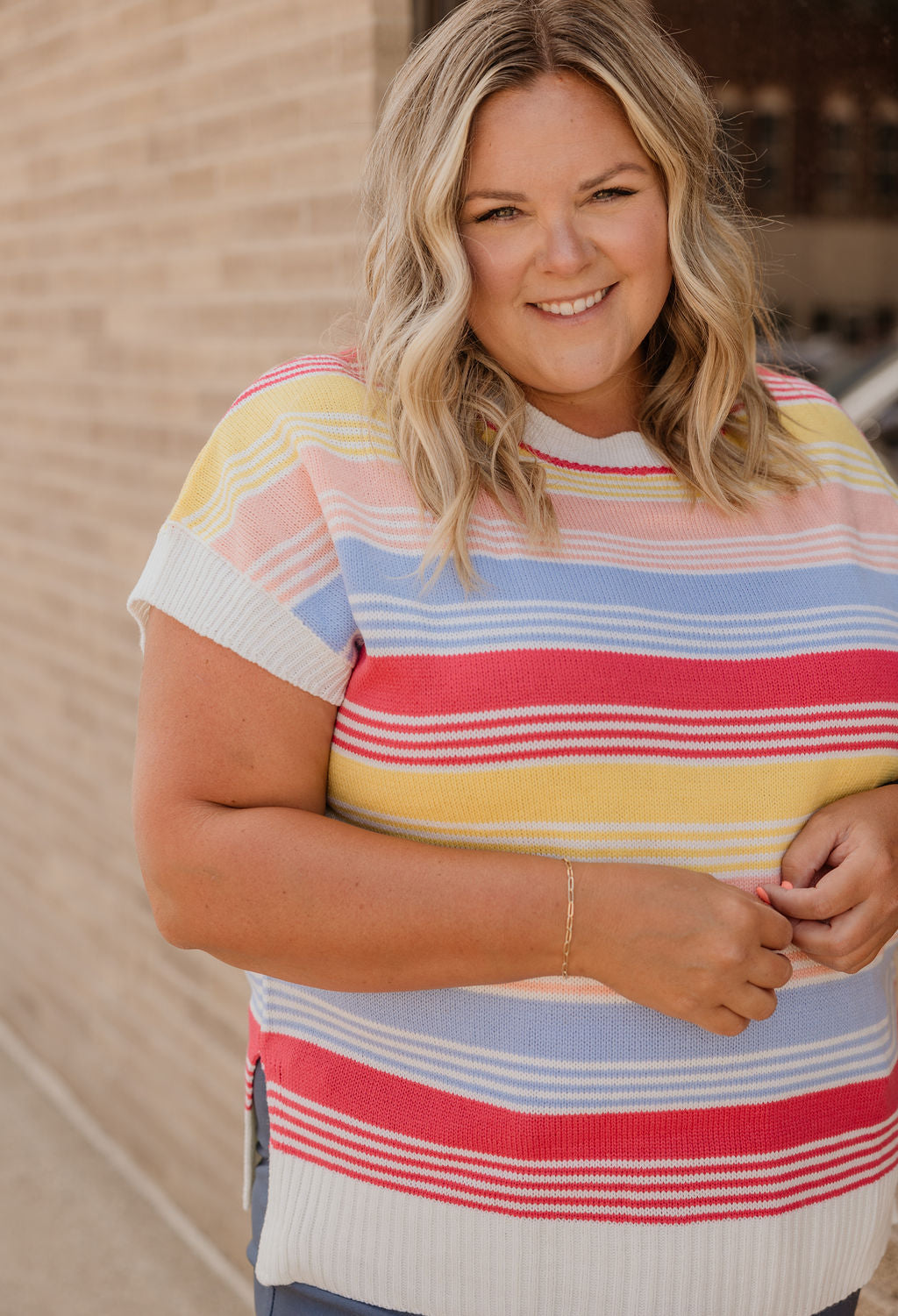 LEANOR CURVY STRIPED SWEATER TOP