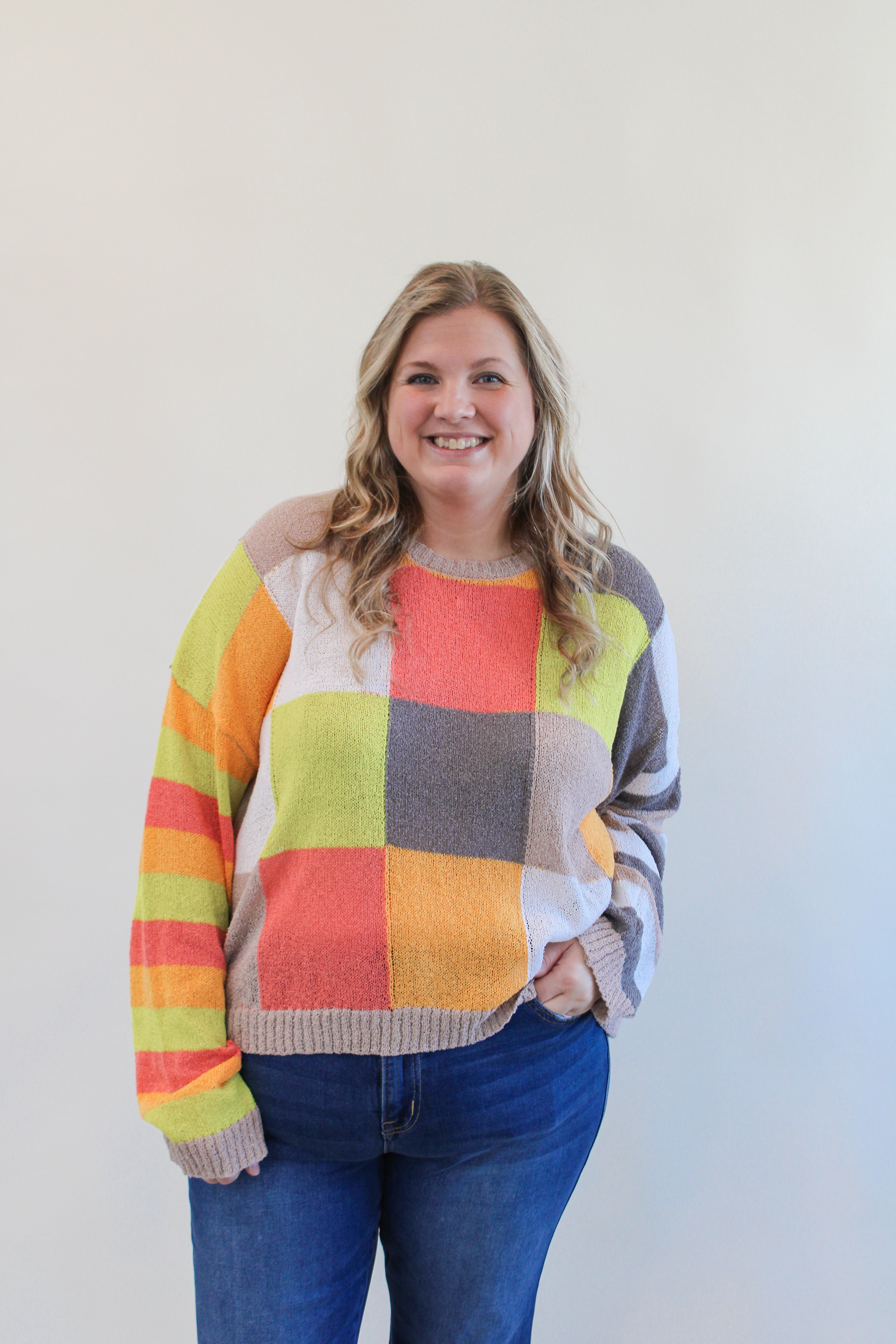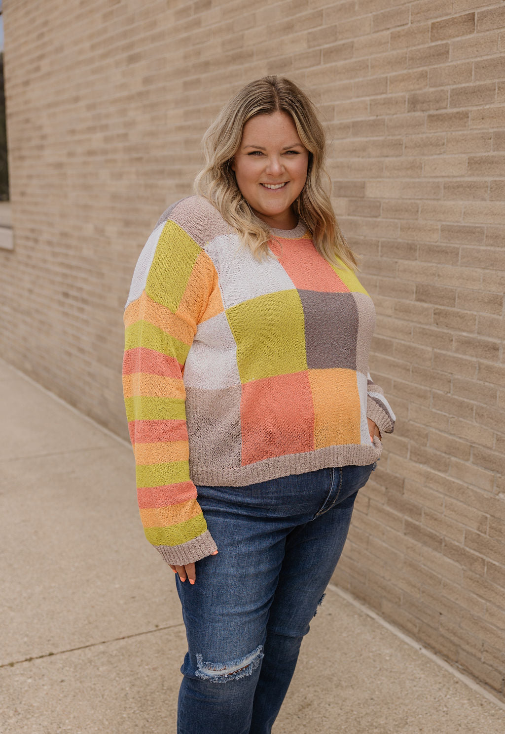 MAGGIE CURVY LIGHTWEIGHT CHECKERBOARD SWEATER