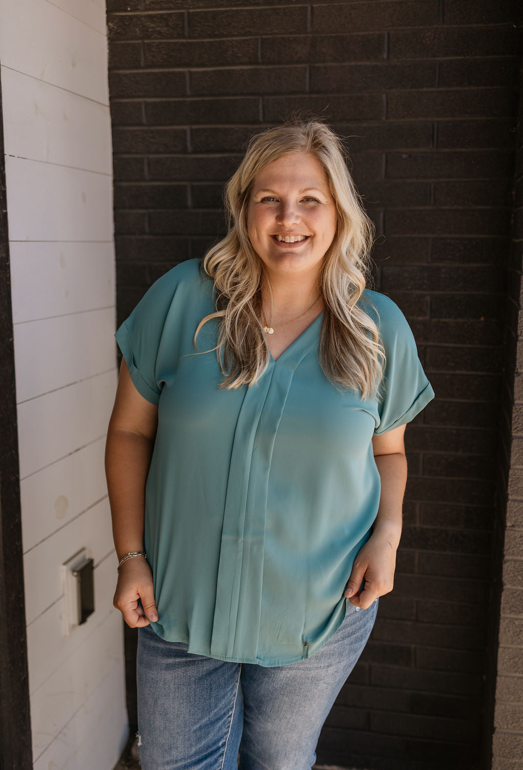 TARYN CURVY VNECK BLOUSE