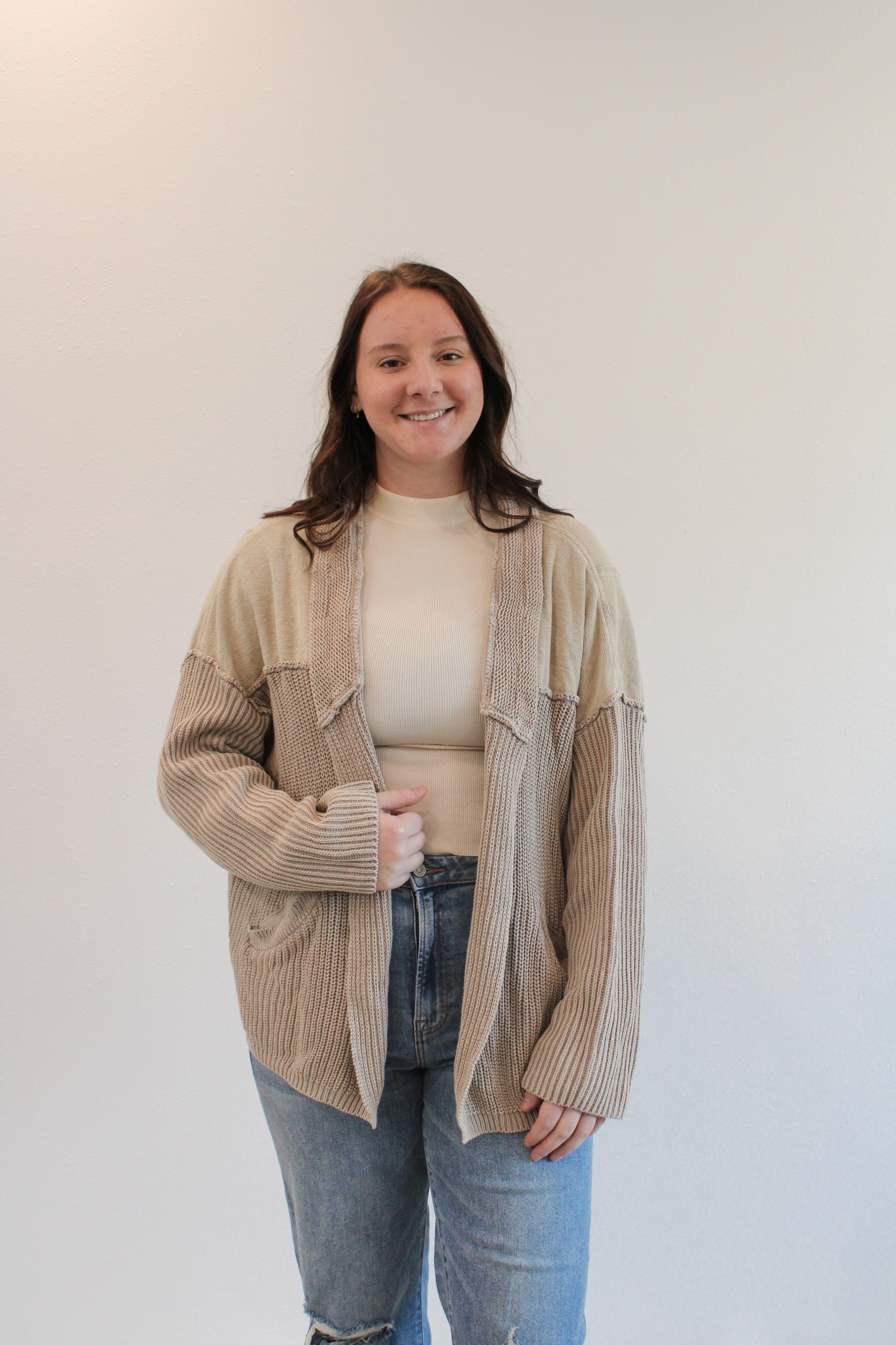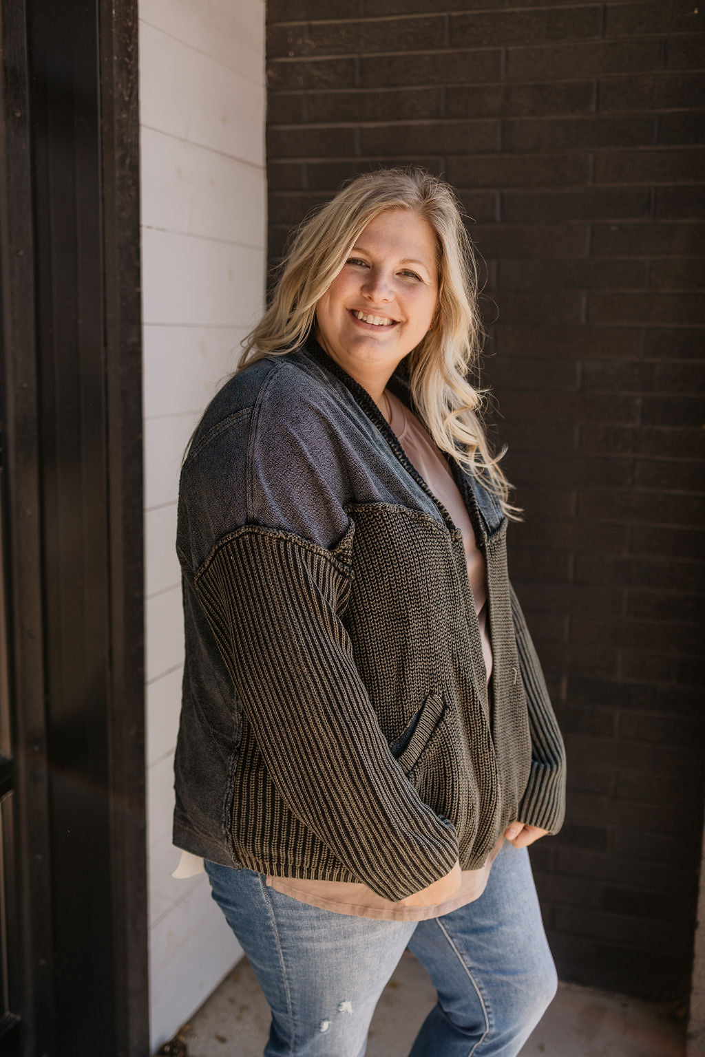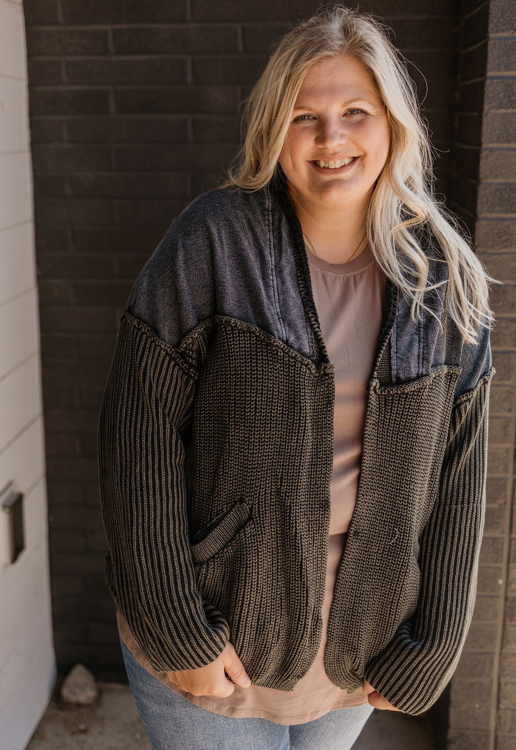 SELAH REG/CURVY ACID WASHED CARDIGAN