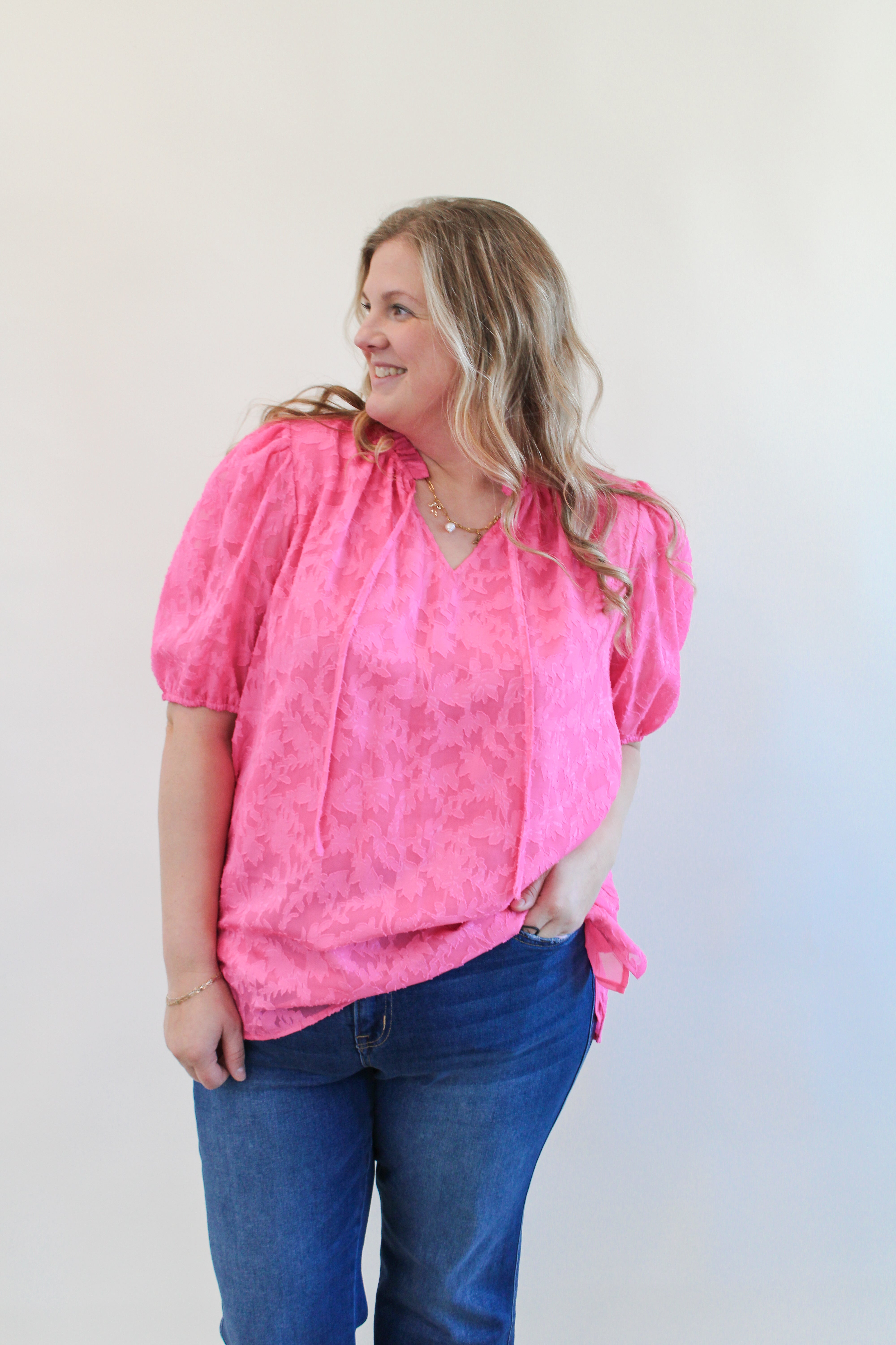 MISSY CURVY HOT PINK BLOUSE