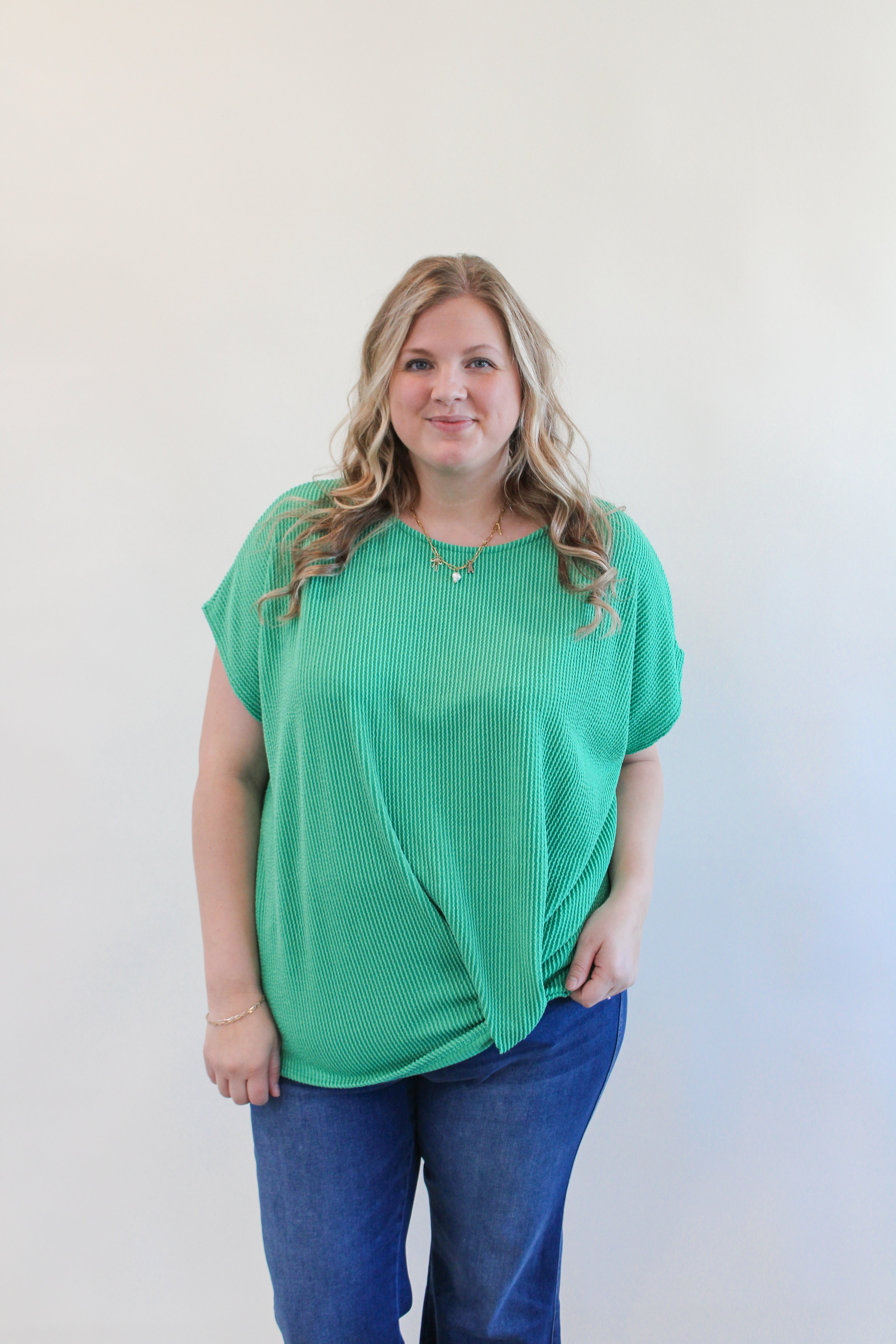 ALONDRA CURVY RIBBED SHORT SLEEVE TOP