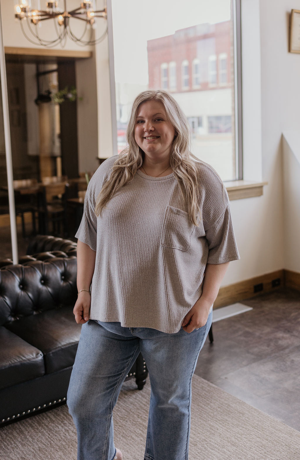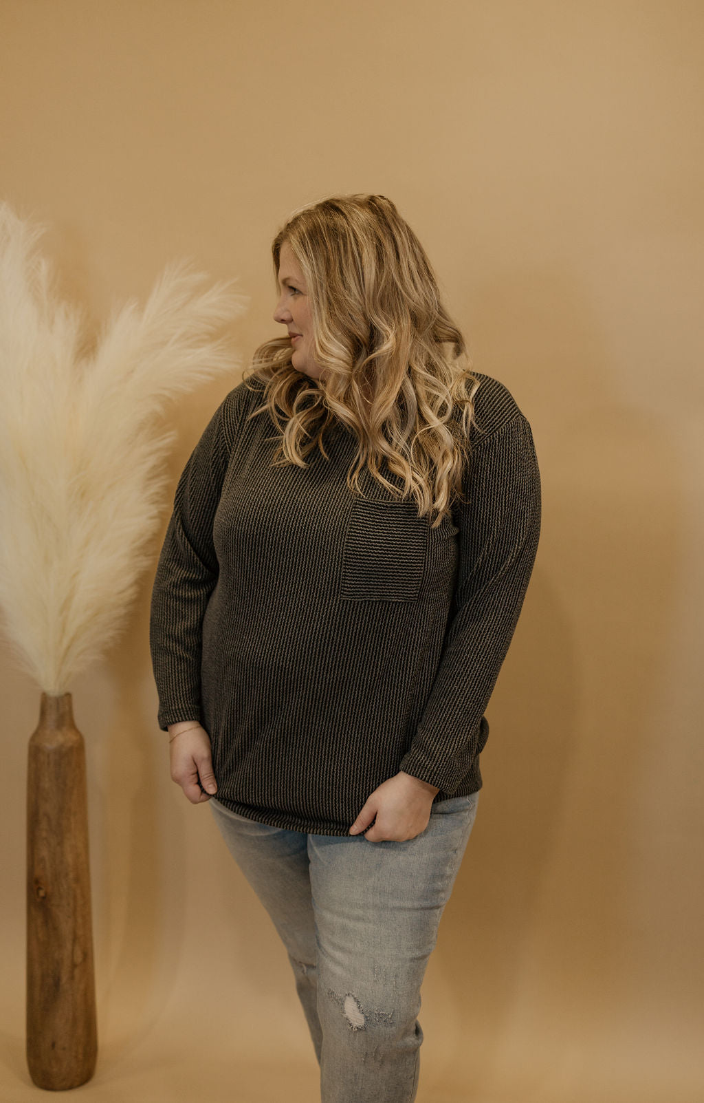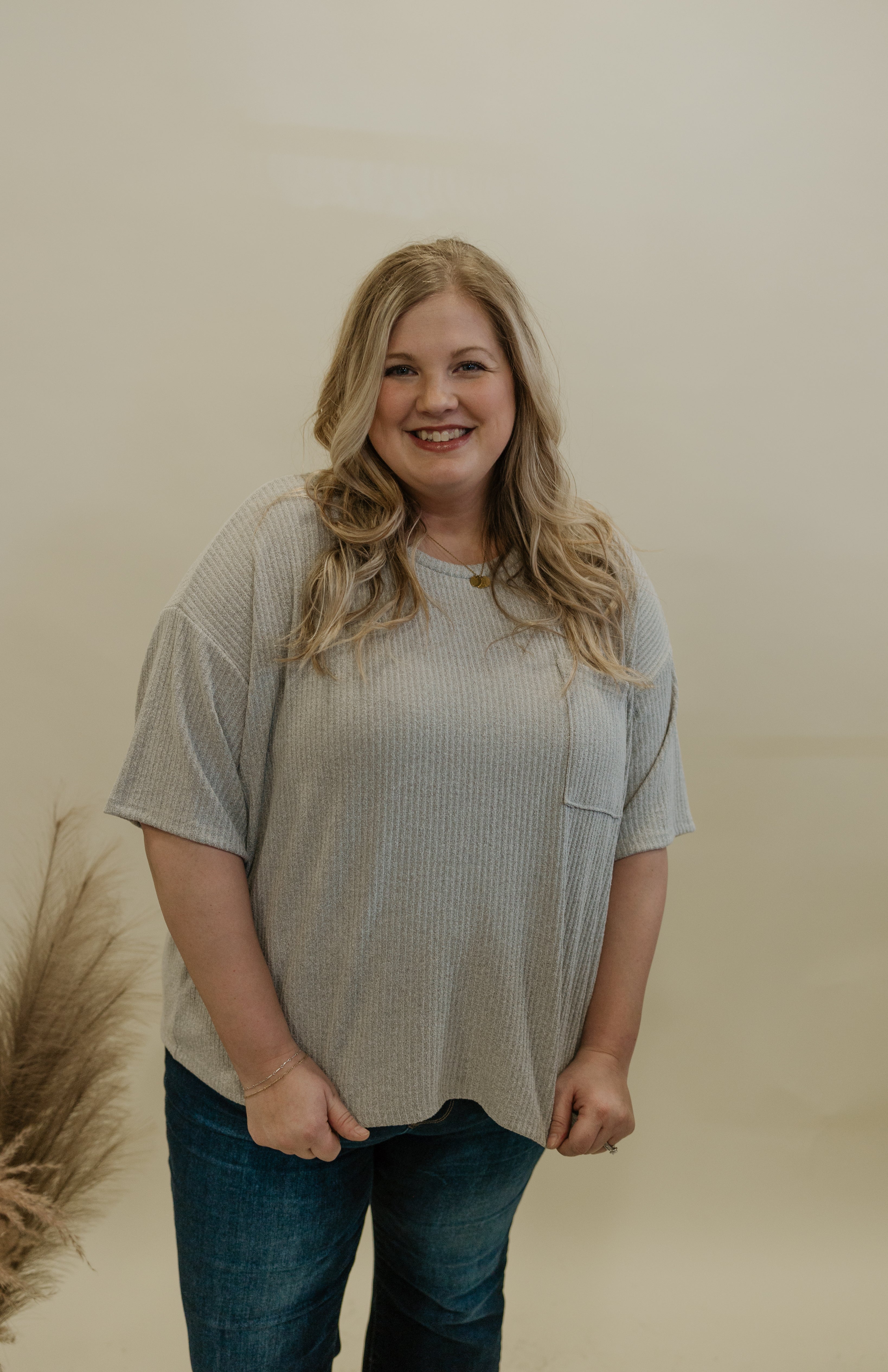COURTNEY CURVY GREY POCKET TOP