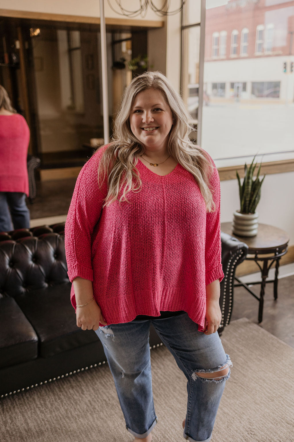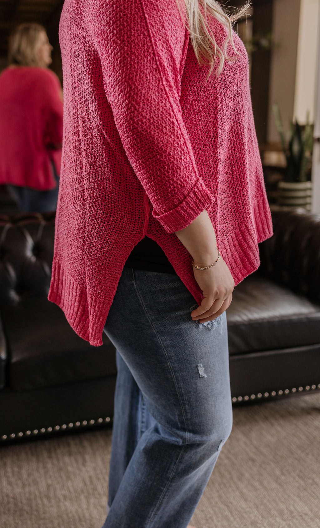 SHAYLEE CURVY KNITTED PINK SWEATER