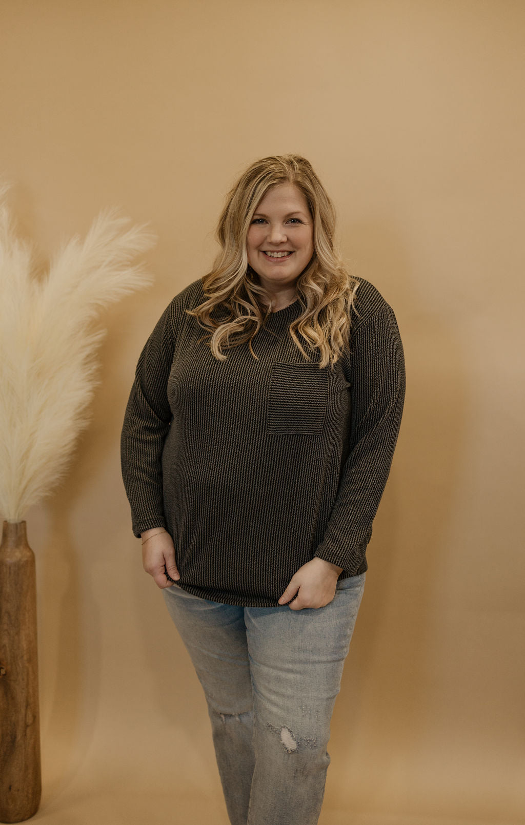 ROXANNE CURVY RIBBED LONG SLEEVE TOP