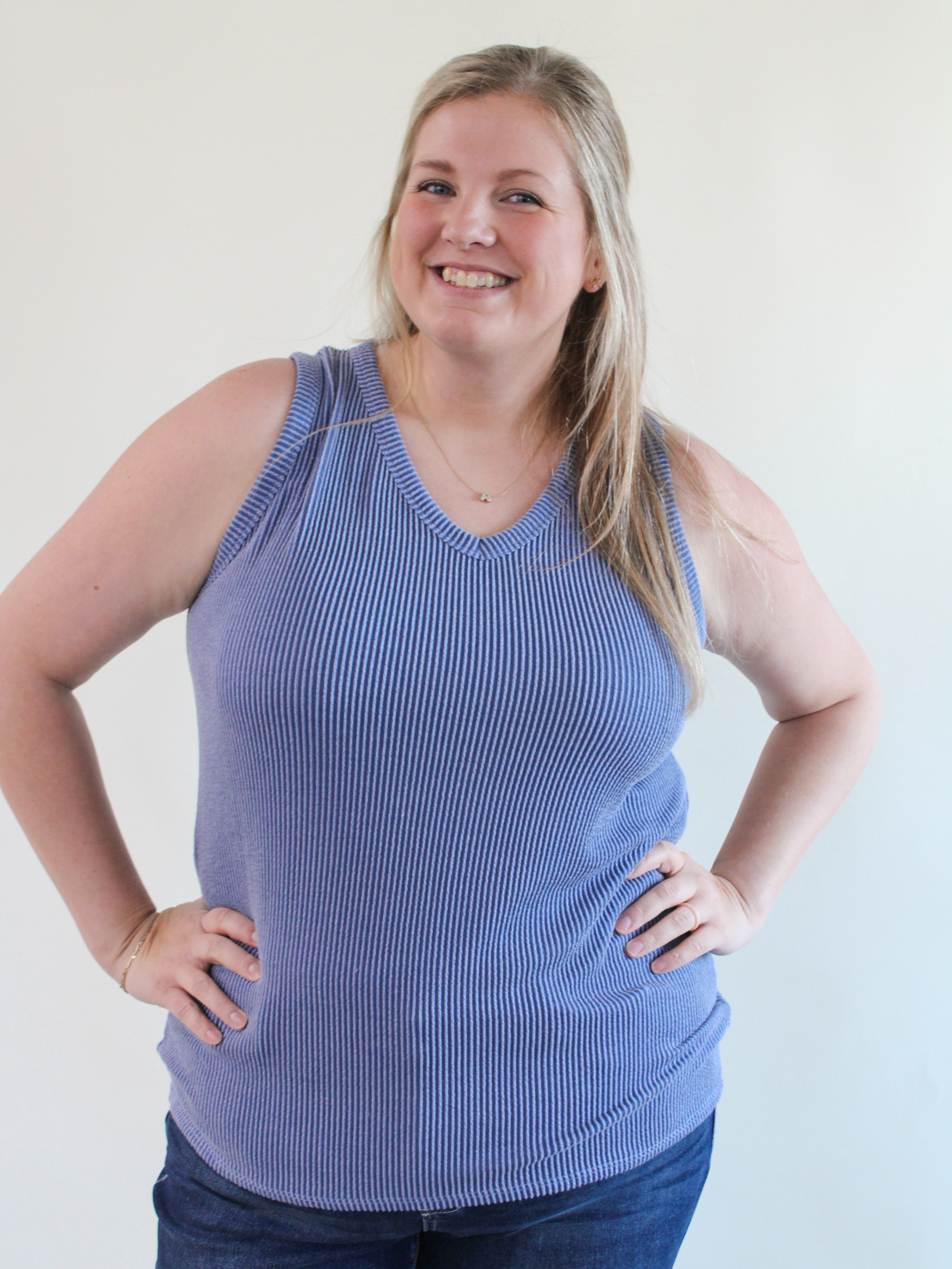 RAVYN CURVY RIBBED VNECK TANK TOP 2 COLOR OPTIONS