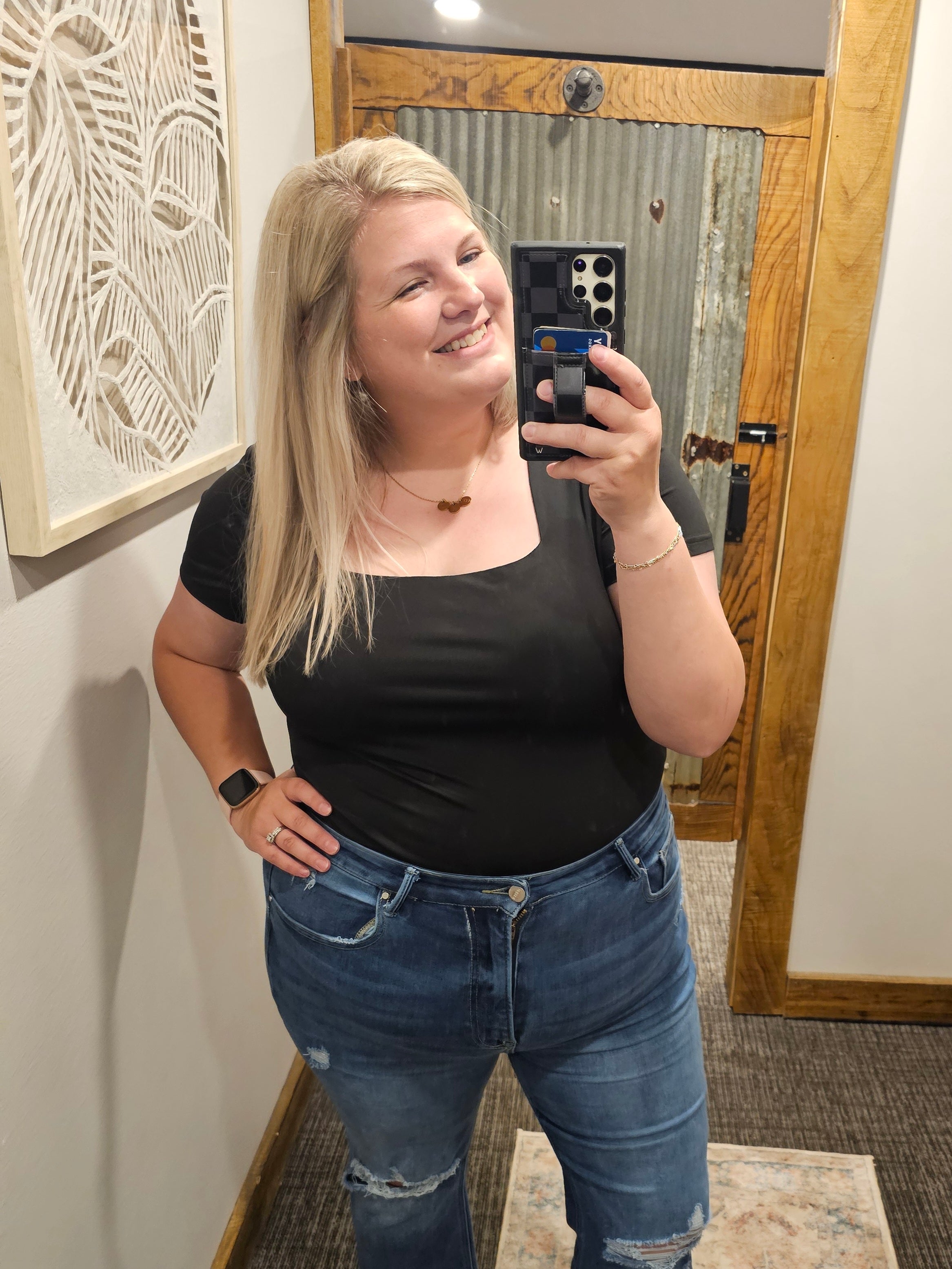 ROSALEE CURVY/REG SQUARE NECK BLACK BODYSUIT
