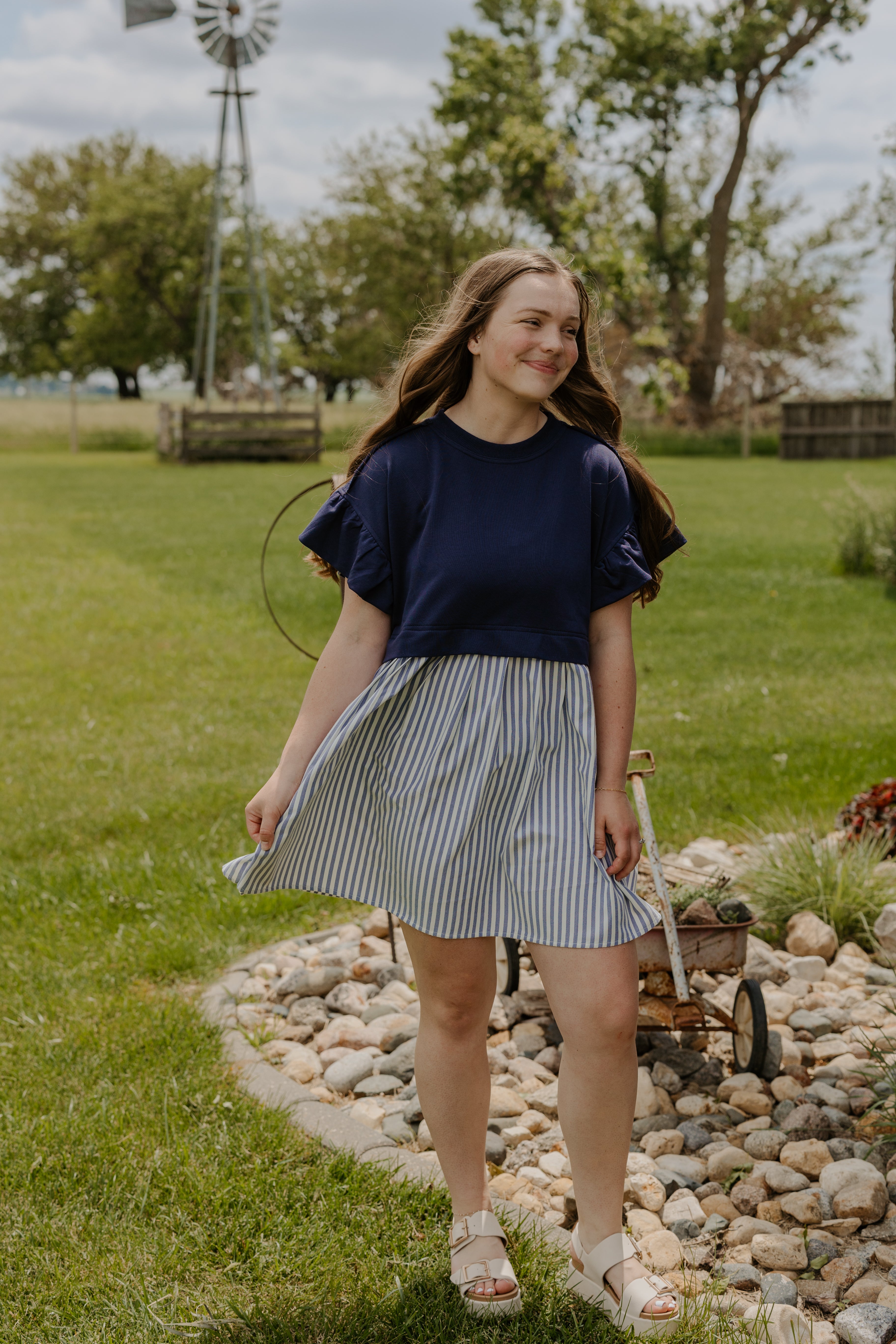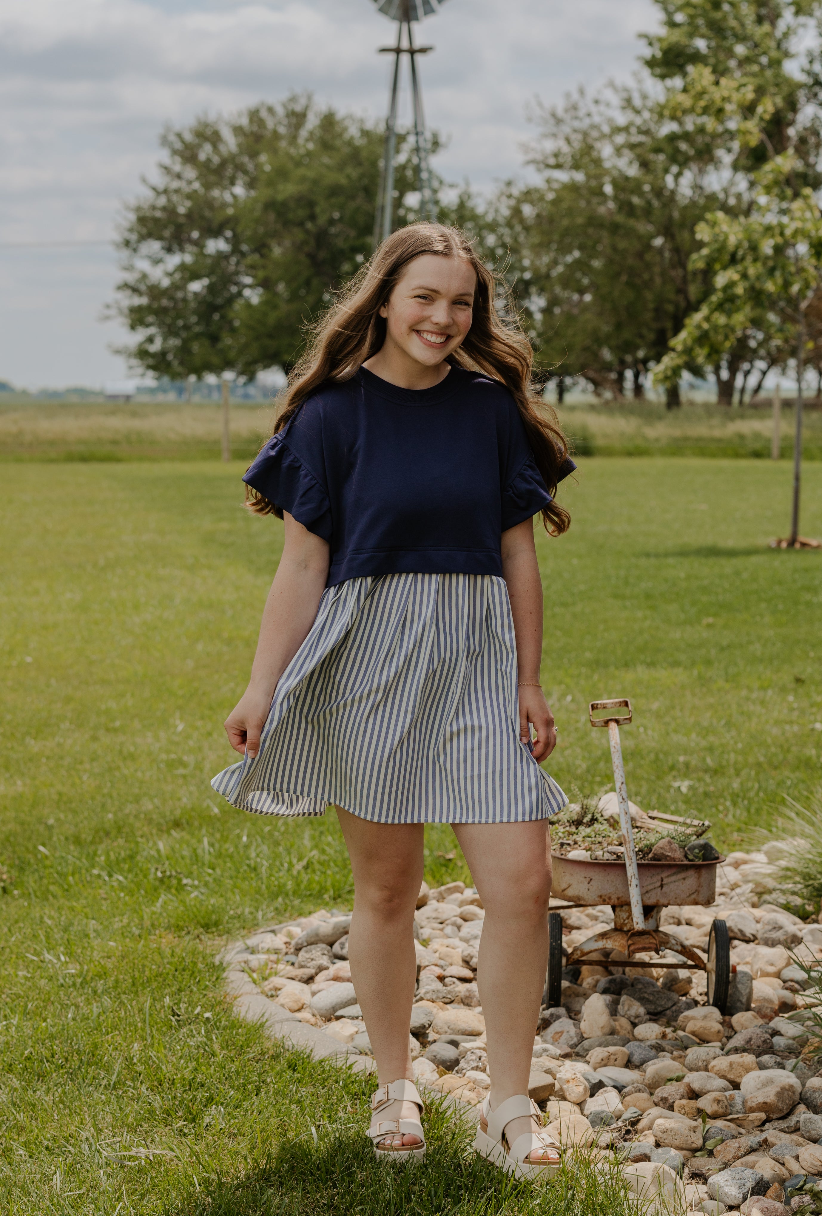This playful mini dress features bold colorblock stripes and charming ruffle details that add a flirty touch to your look. Perfect for sunny days or fun nights out, its lightweight fabric and lively design keep you comfortable and stylish wherever you go. Embrace vibrant vibes with this eye-catching piece!