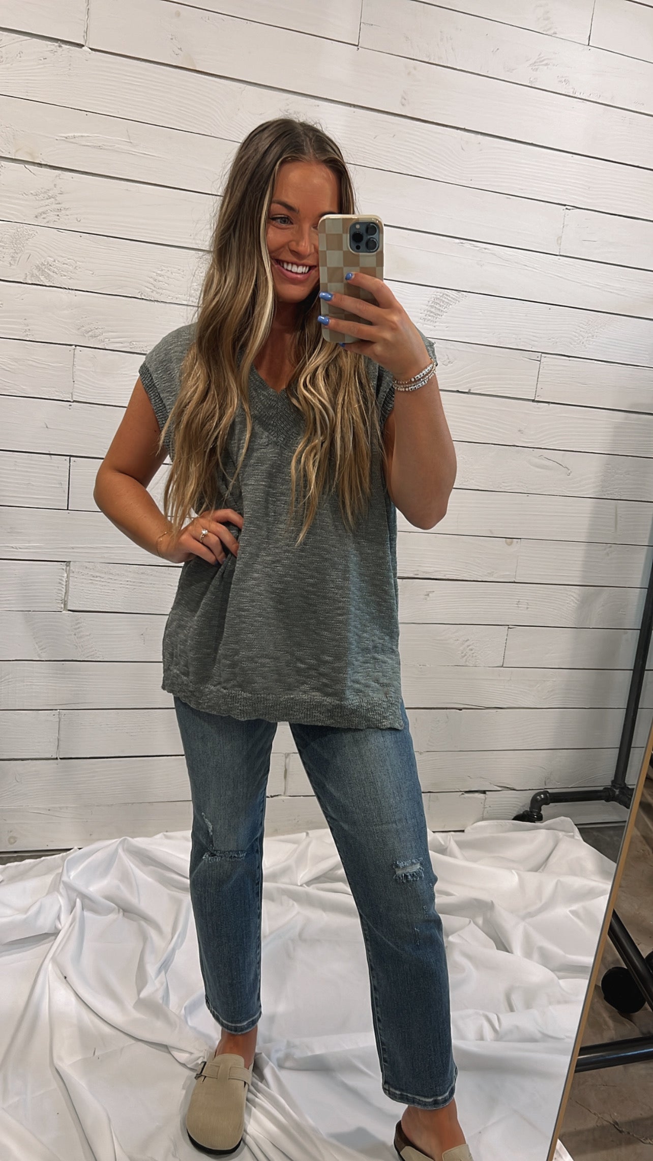 Green mint vneck lightweight sweater vest