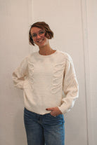 Stay cozy and stylish with the Alianna Sweater! This long sleeve knit top features a delicate floral stitch detail and a relaxed fit. Perfect for any occasion with its lightweight fabric, you'll love adding this top to your wardrobe.