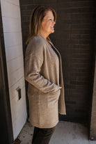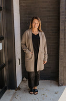 Cozy, meet chic. This classic cardi is featured in a soft knit fabrication and a relaxed, longline silhouette with ribbed trim and oversized pocket detailing.