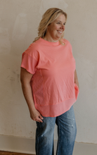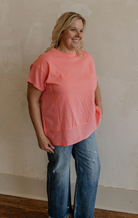 EVERLY CORAL ROUND NECK RIBBED DETAIL TOP