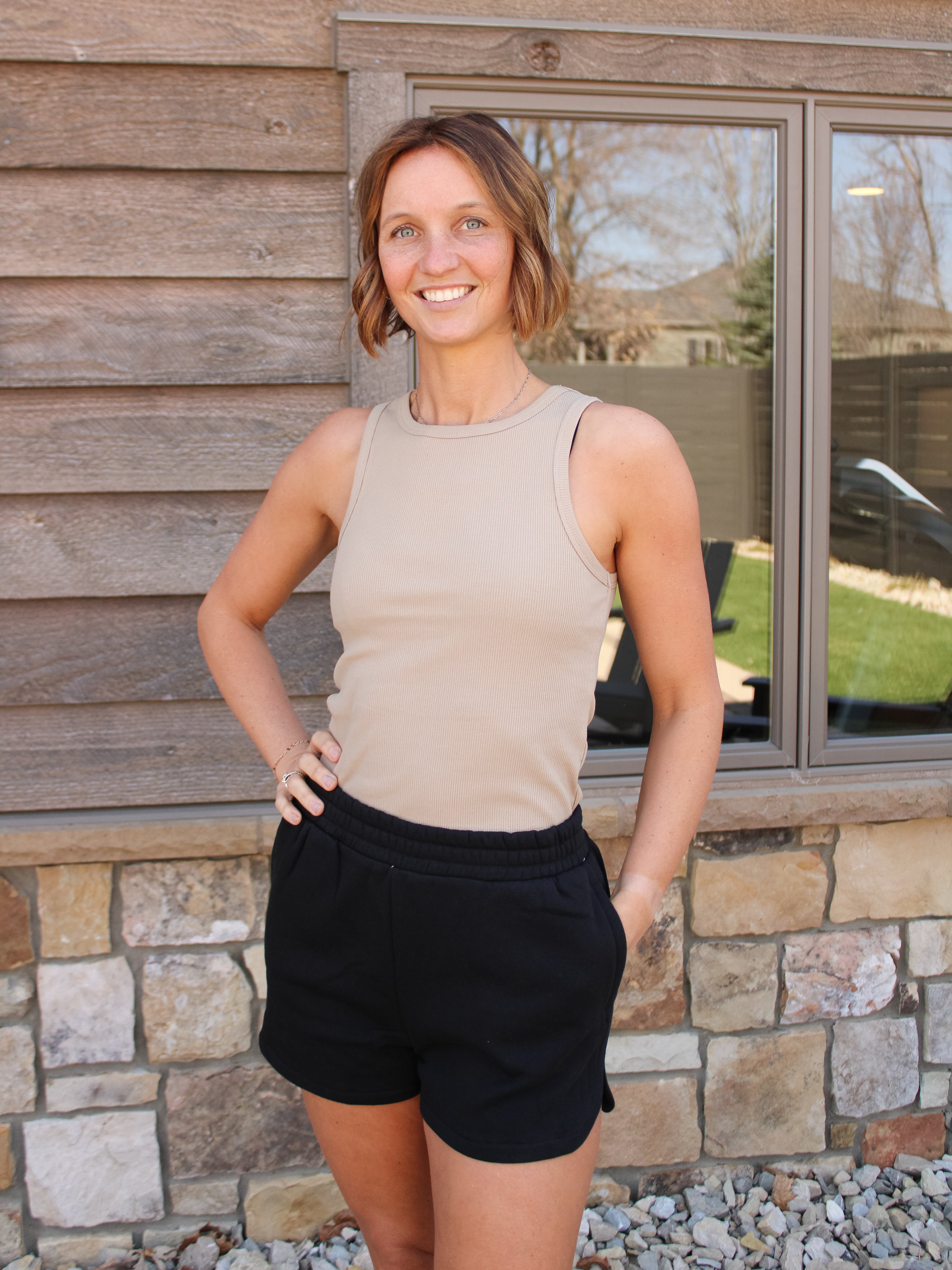 This crewneck tank is soft, sleek, and bra-friendly, perfect as a base layer in cooler weather or on its own as an elevated option. With its comfy ribbed fabric and fitted, tuckable design, it’s the kind of piece you’ll keep reaching for, no matter the season.