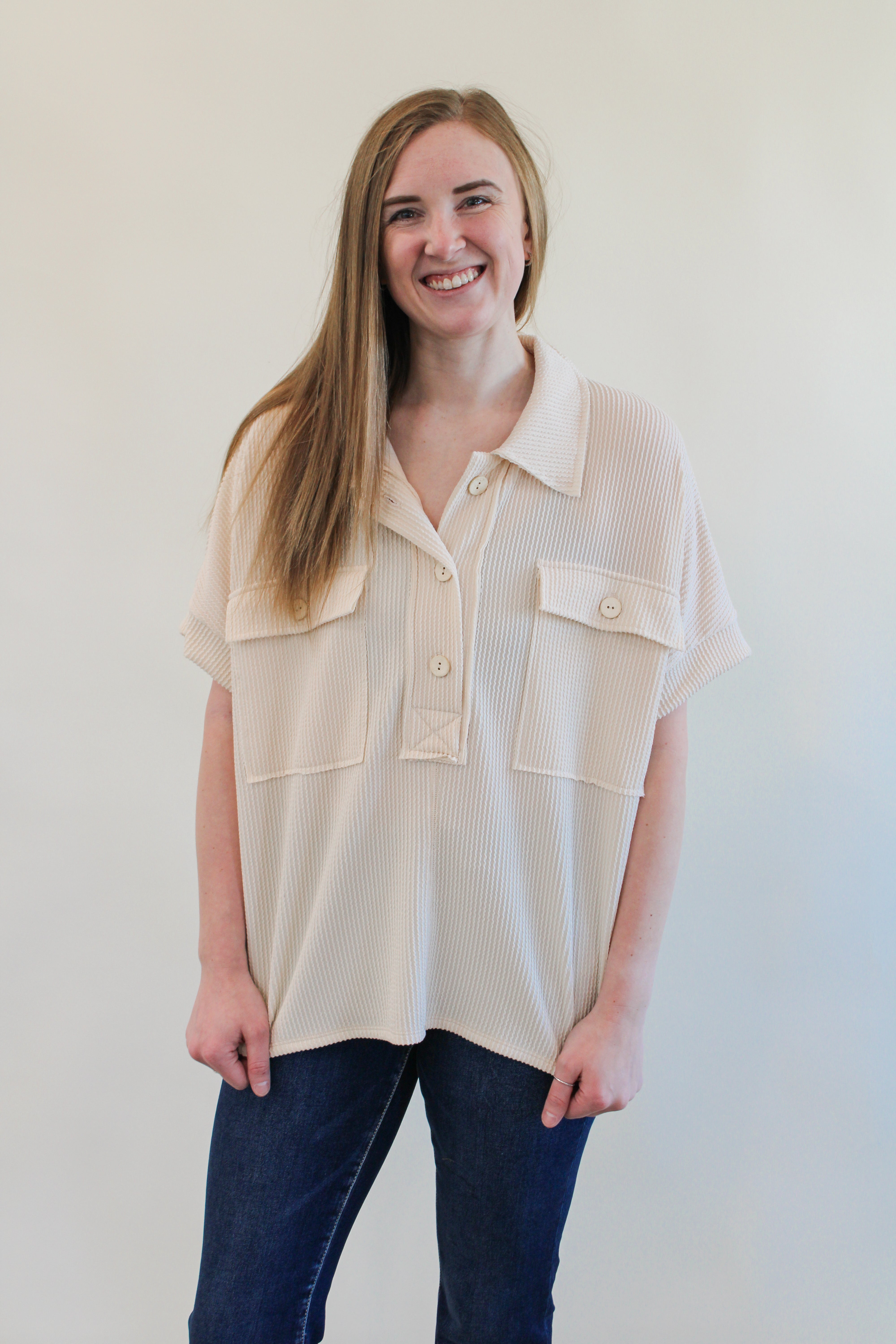 Unleash your playful side with the HAILEY HALF BUTTON DOWN TOP. Made with a blend of polyester, rayon, and spandex, this top boasts a cozy yet stretchy fit. Its ribbed collar and unique wooden buttons add fun and quirky touches to any outfit. Perfect for showing off your carefree spirit!