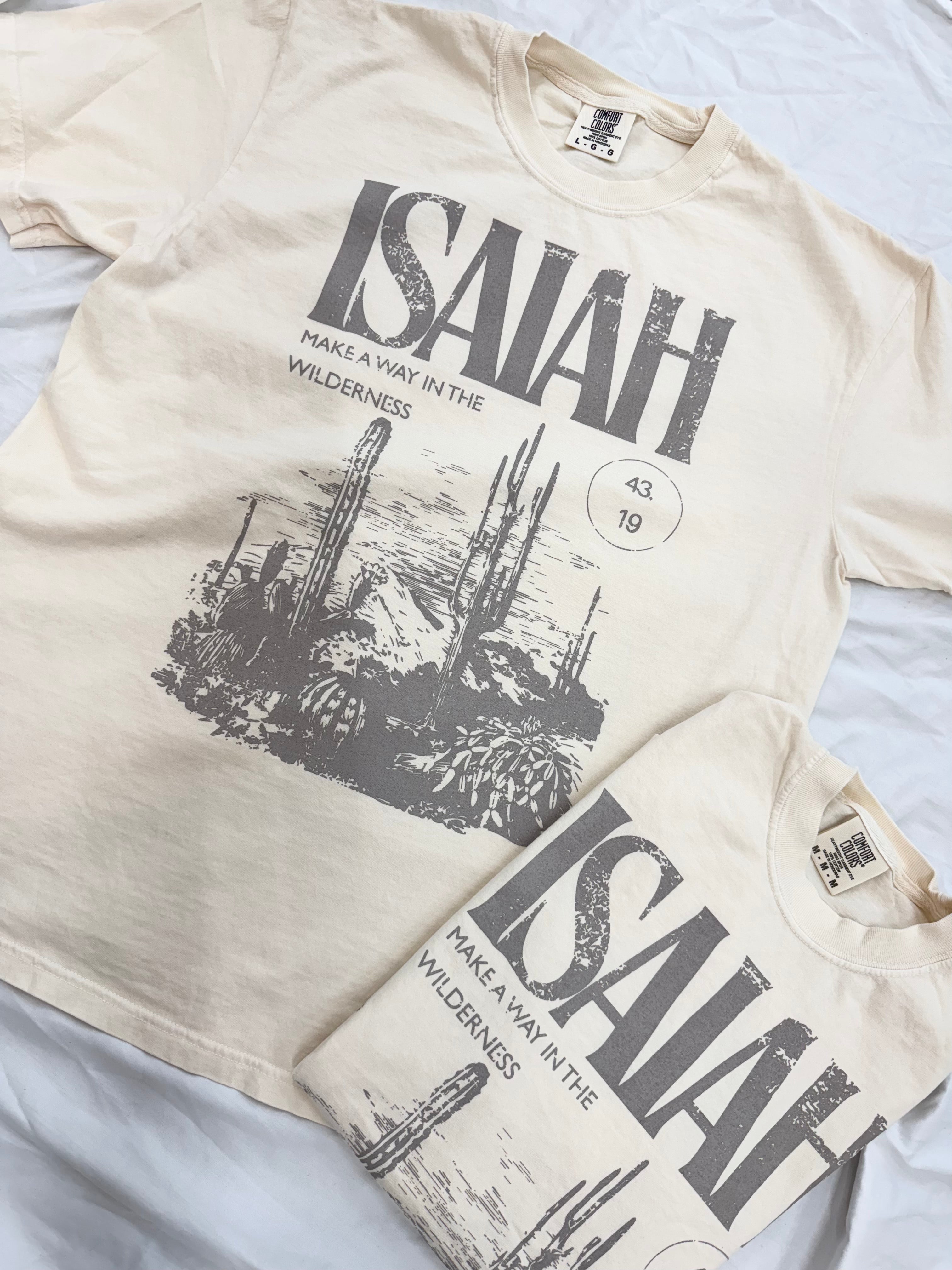 Isaiah 43:19 design imprinted on a neutral, ivory Comfort Colors crewneck t-shirt. Perfect to layer under your favorite cardigan or flannel button-up.