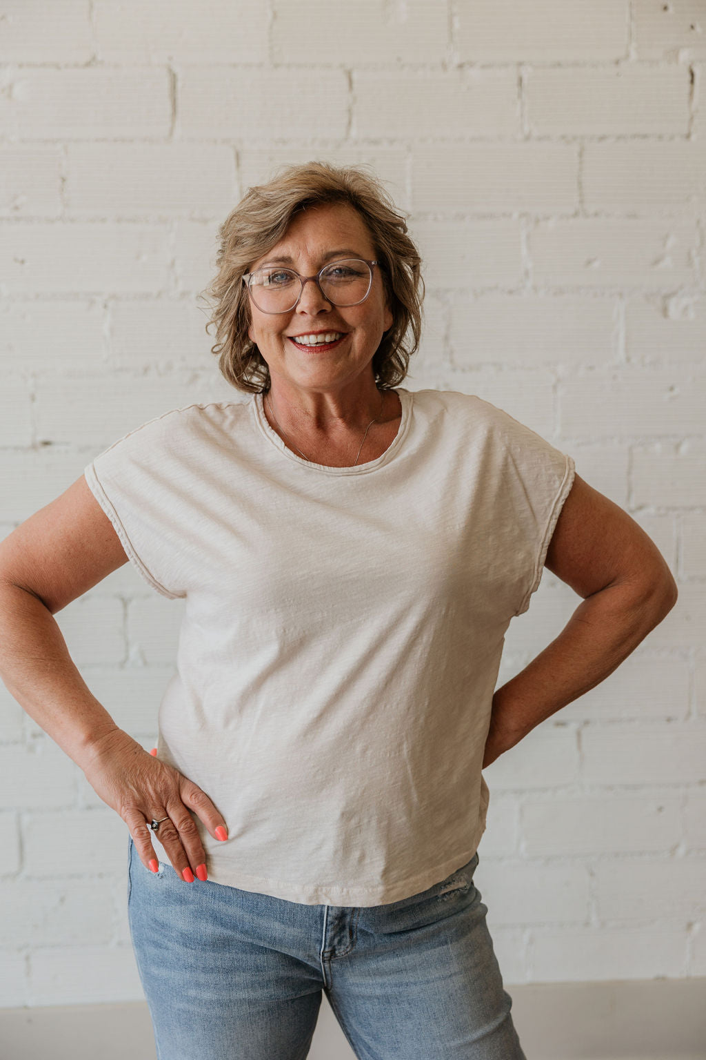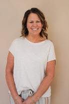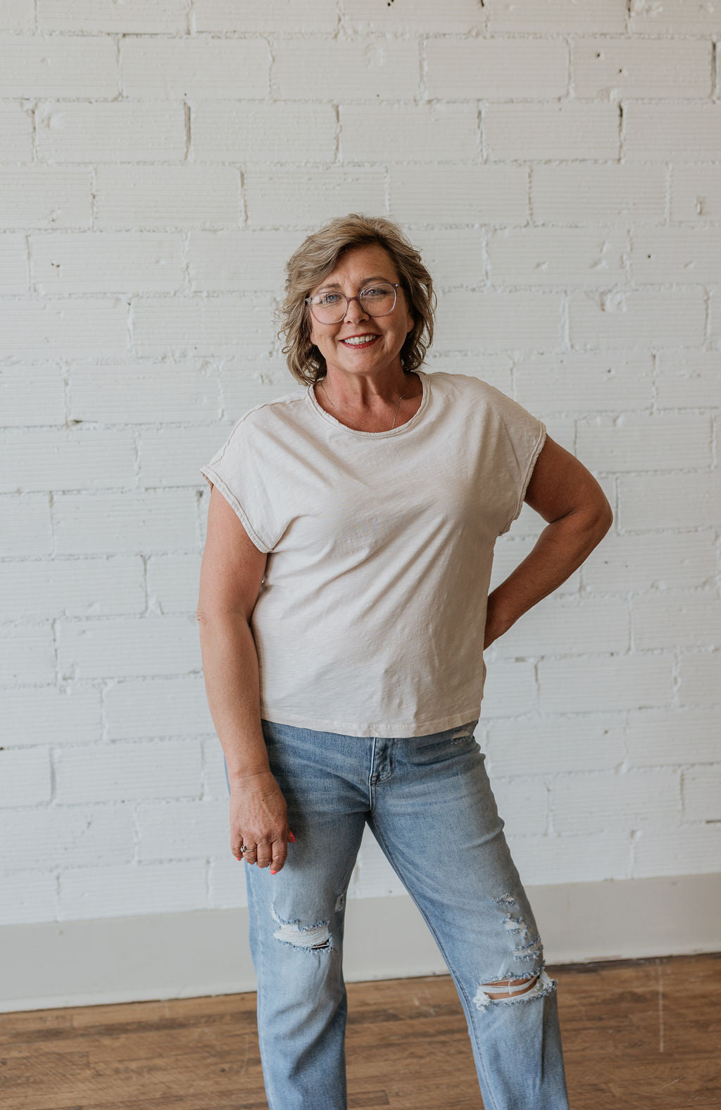 Capped sleeve short sleeve top with a boxy slightly cropped cut