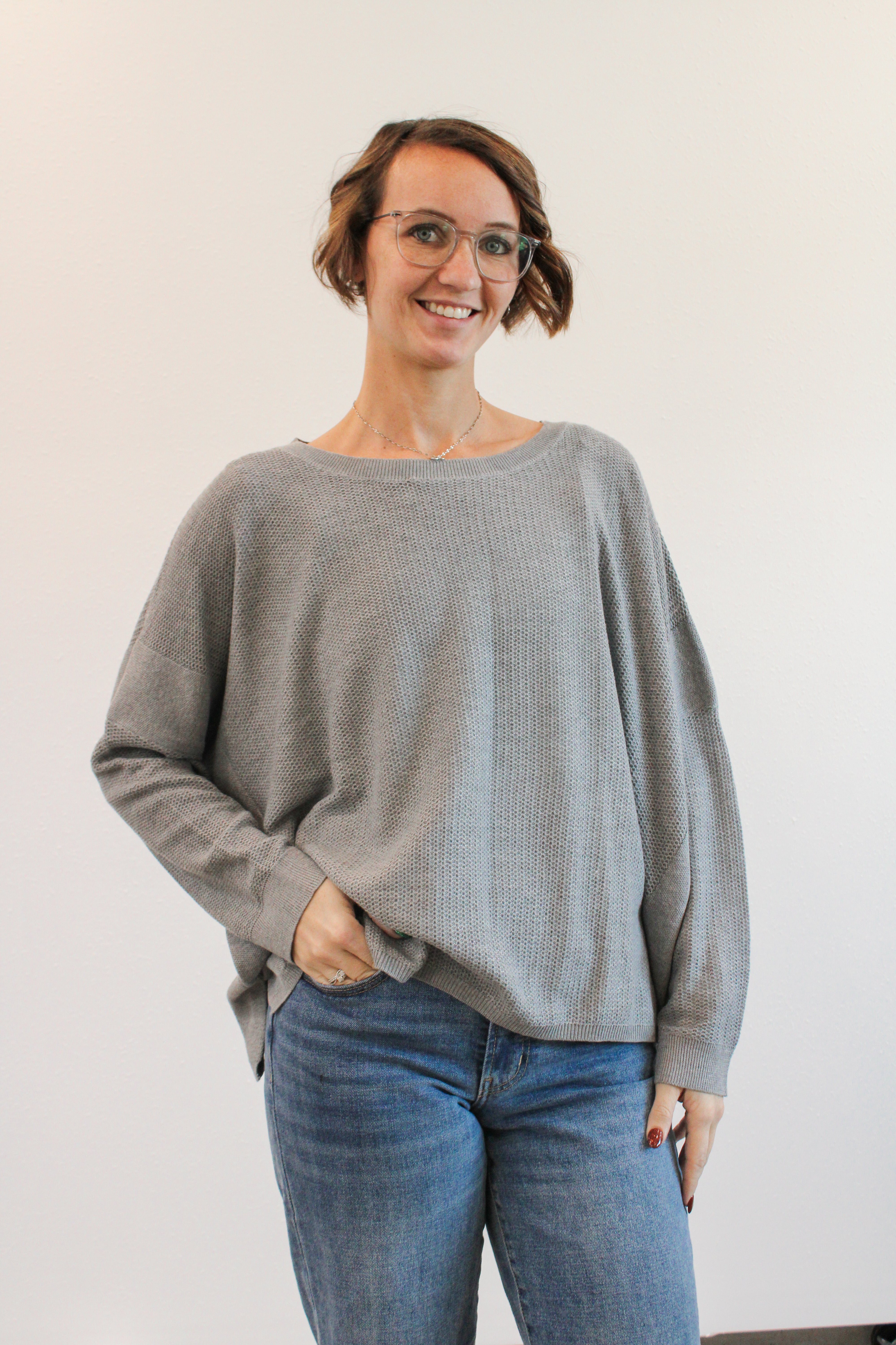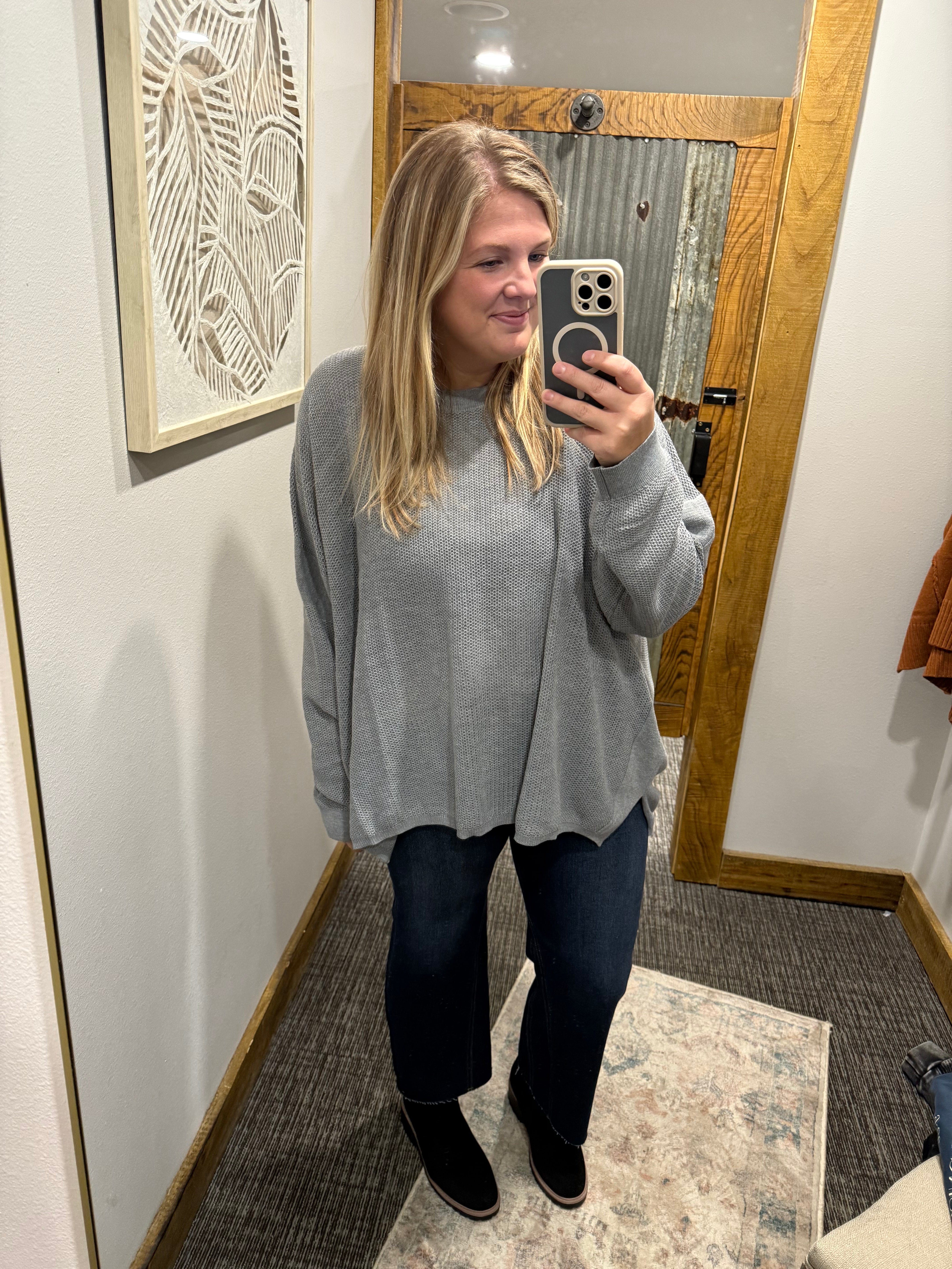 Stay cozy and stylish in our Kayne oversized sweater! The long length and lightweight knit make it perfect for layering, while the heather grey color adds a touch of elegance. Available in curvy and regular sizes for the perfect fit. Upgrade your sweater game today!