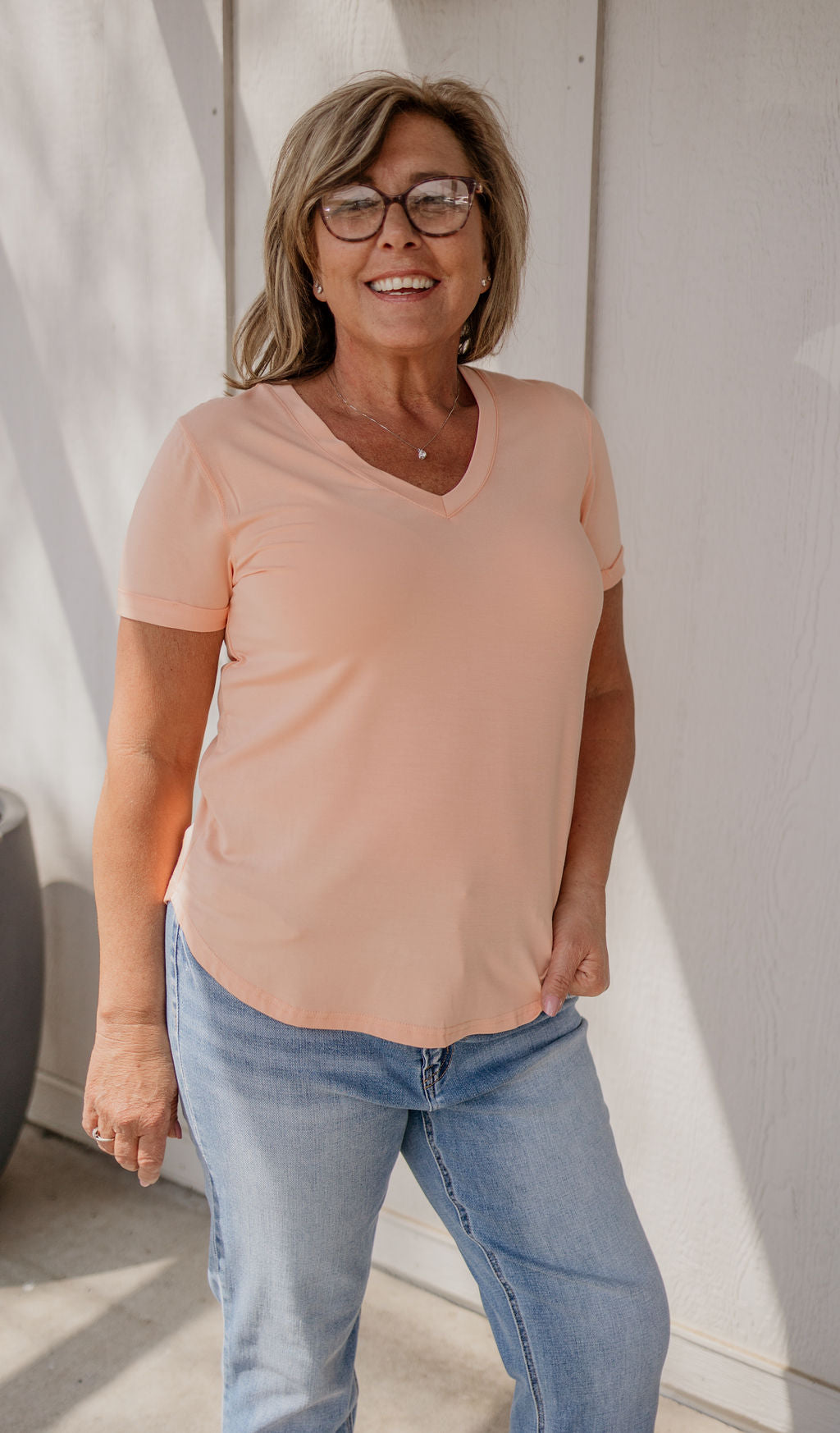 The Women's Thread & Supply Lanelle T-Shirt will soon become your go-to basic everyday t-shirt. Made from a fabric blend, this Thread & Supply Lanelle T-Shirt is super soft and offers a slight amount of stretch to allow for mobility while still retaining shape. With a v-neckline and shirt-tail hem, you'll enjoy a classic look with plenty of coverage.