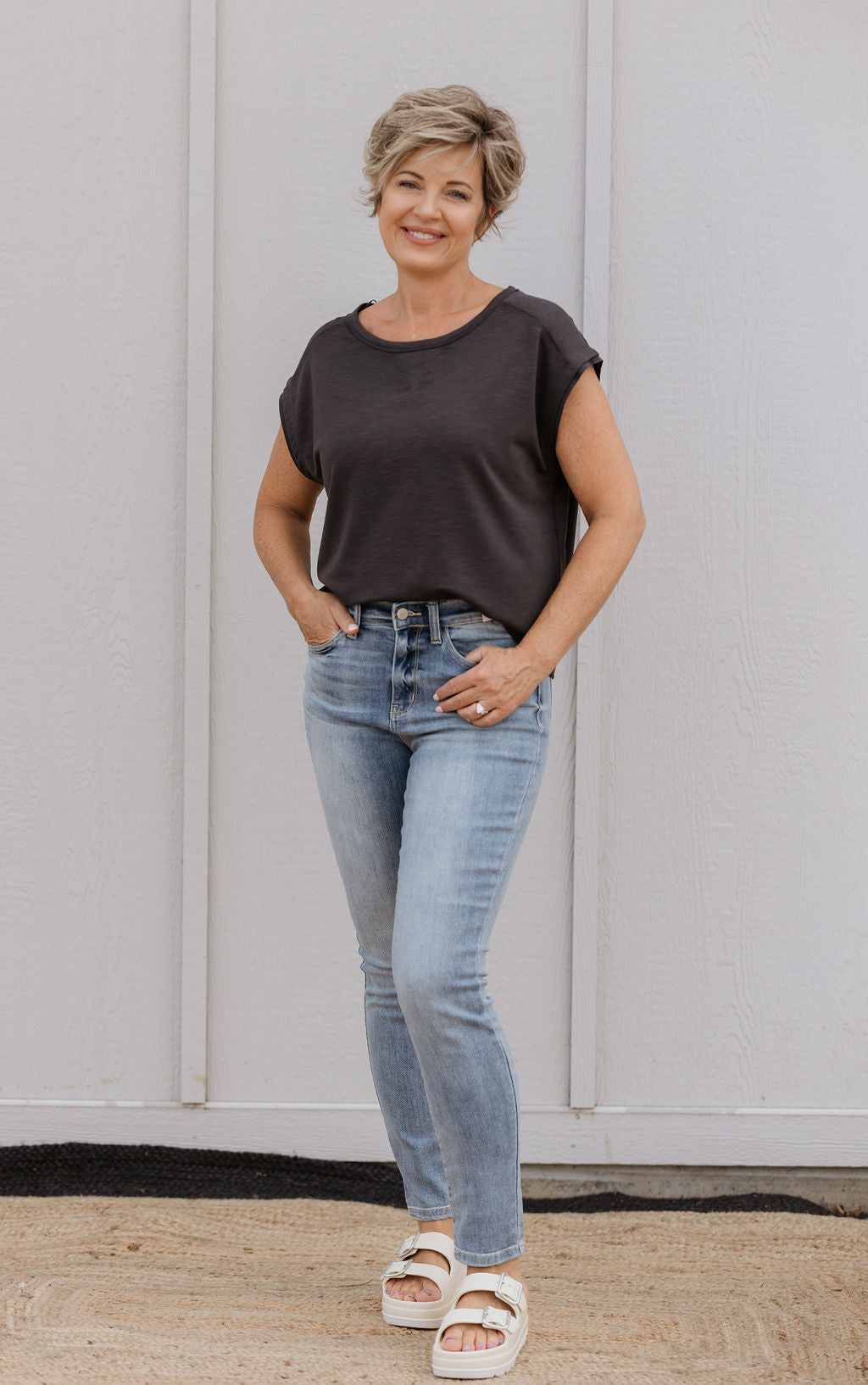 LIZA DROP SHOULDER KNIT TOP 2 COLOR OPTIONS