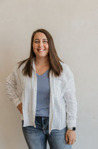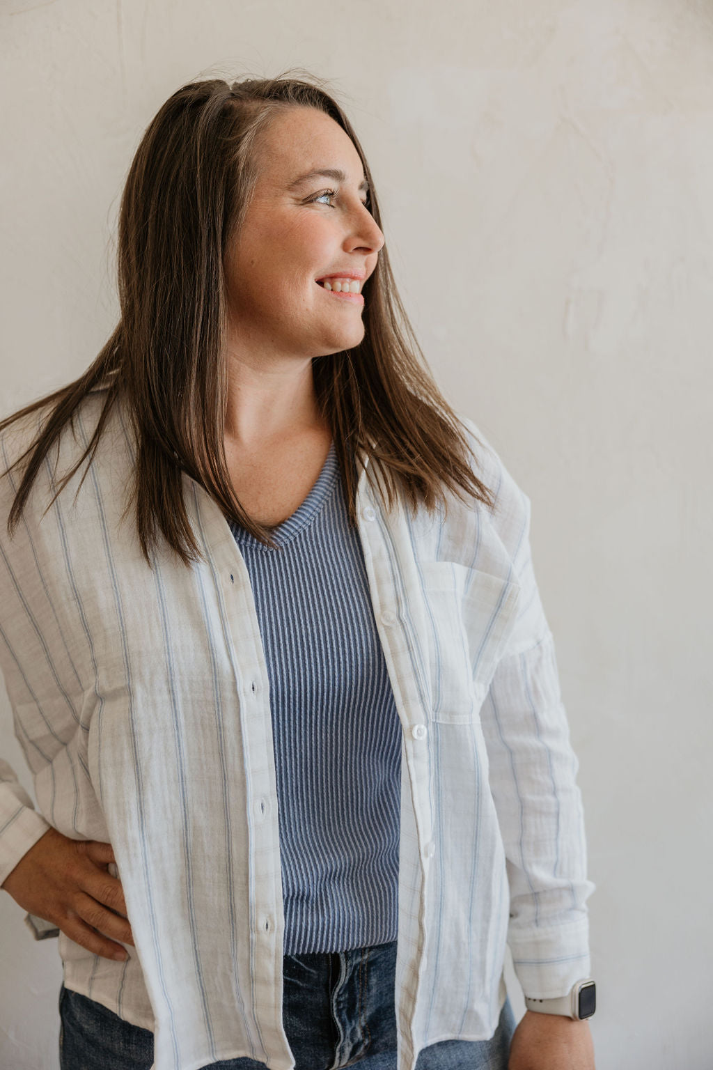 MARLOW IVORY & CHAMBRAY STRIPED BUTTON DOWN TOP