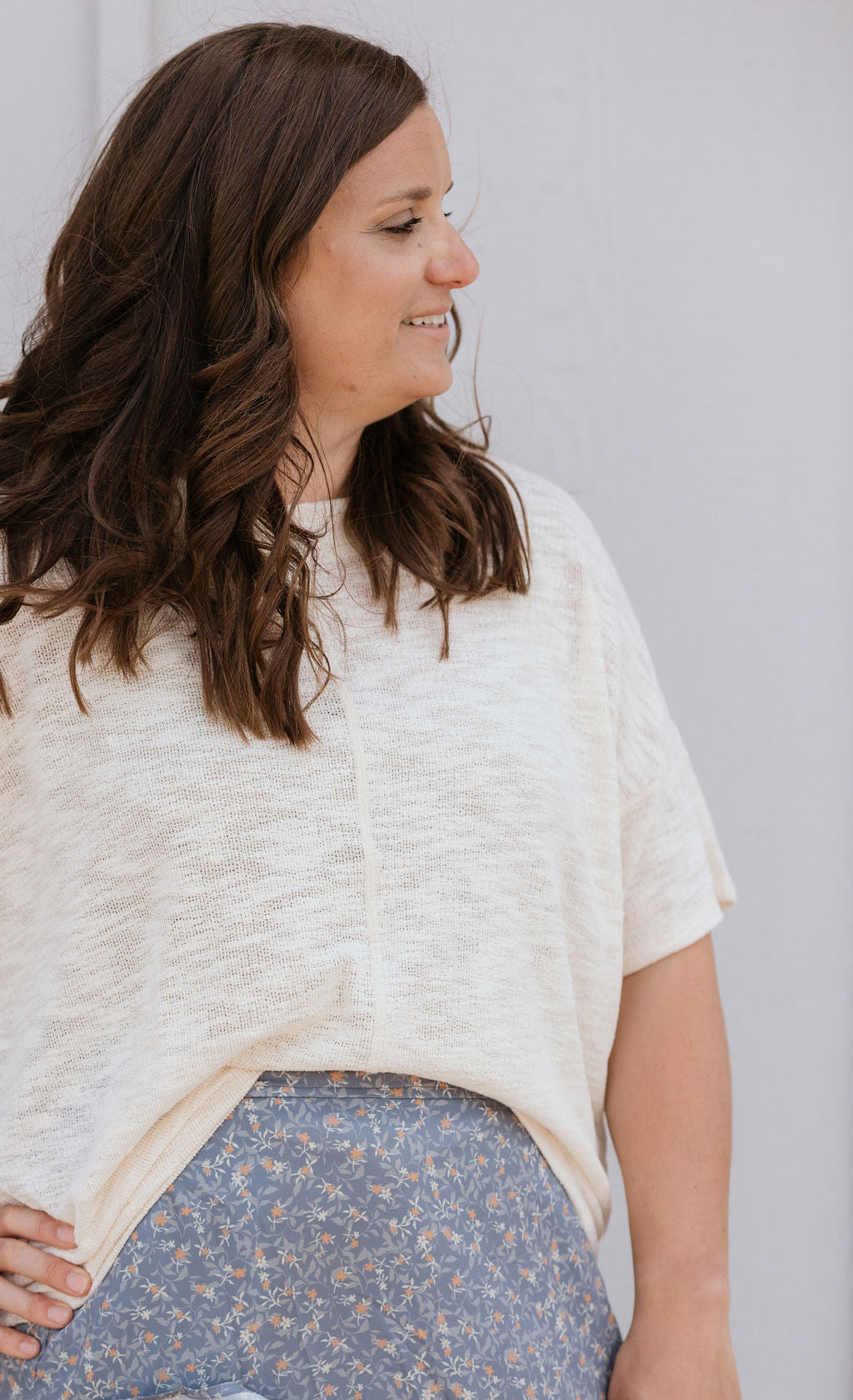 Perfect cream half sleeve top pairs perfect with a colored denim