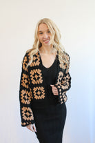 CLEO BLACK & CAMEL CROCHET KNIT CARDIGAN