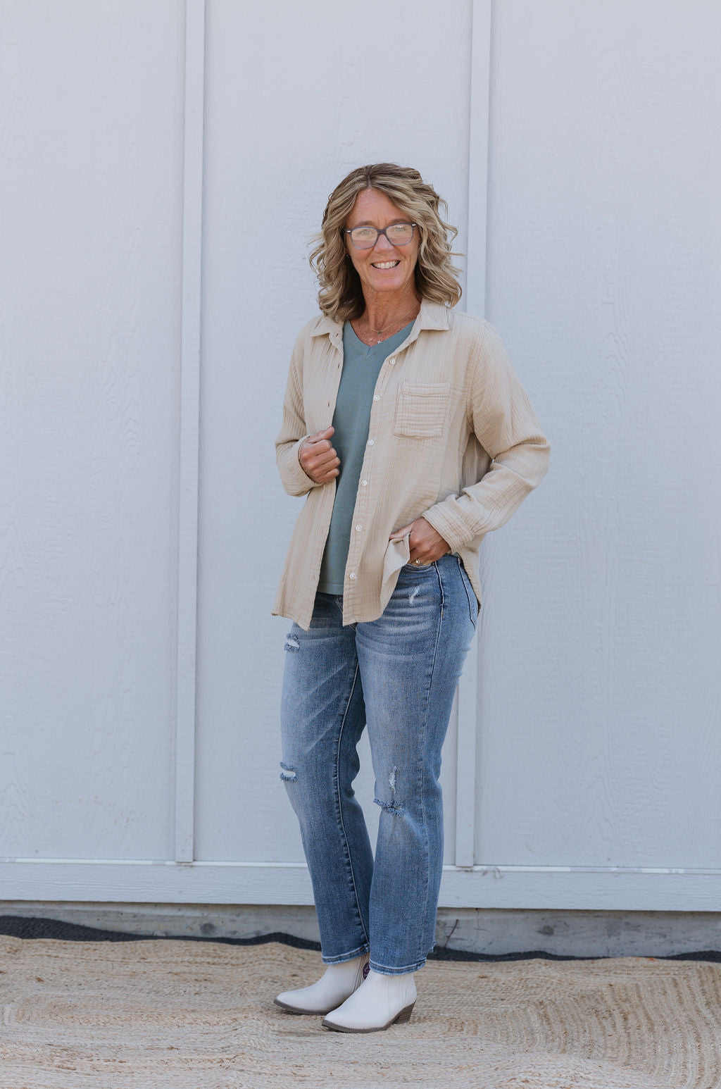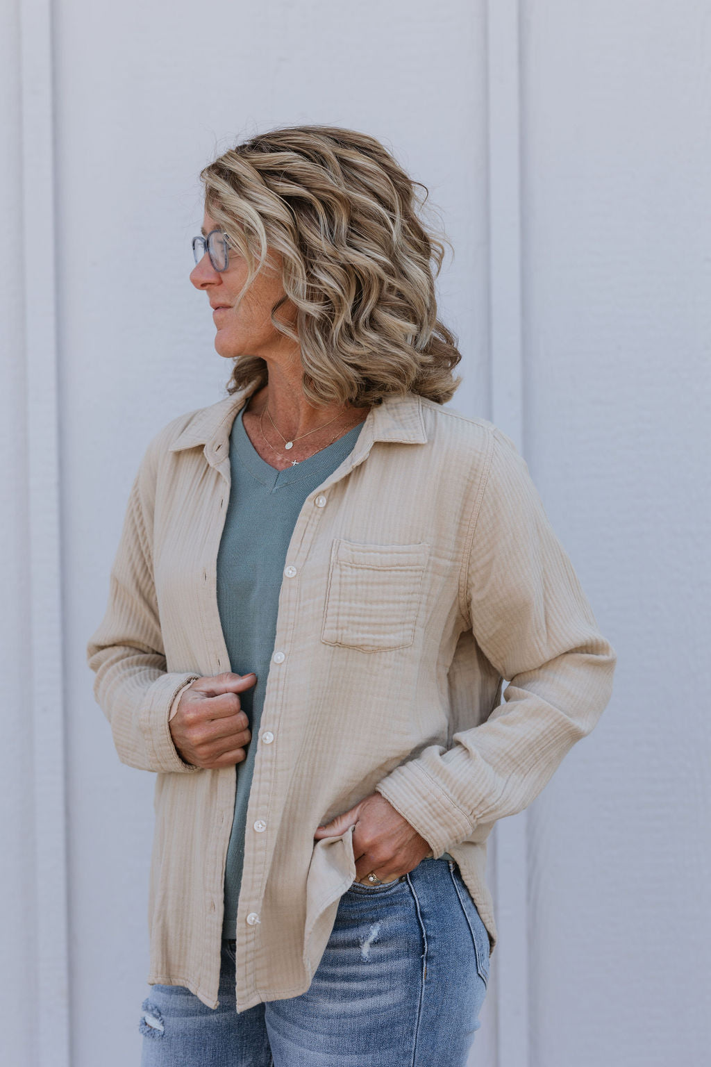 RILEY GRANOLA GAUZE MATERIAL BUTTON DOWN TOP