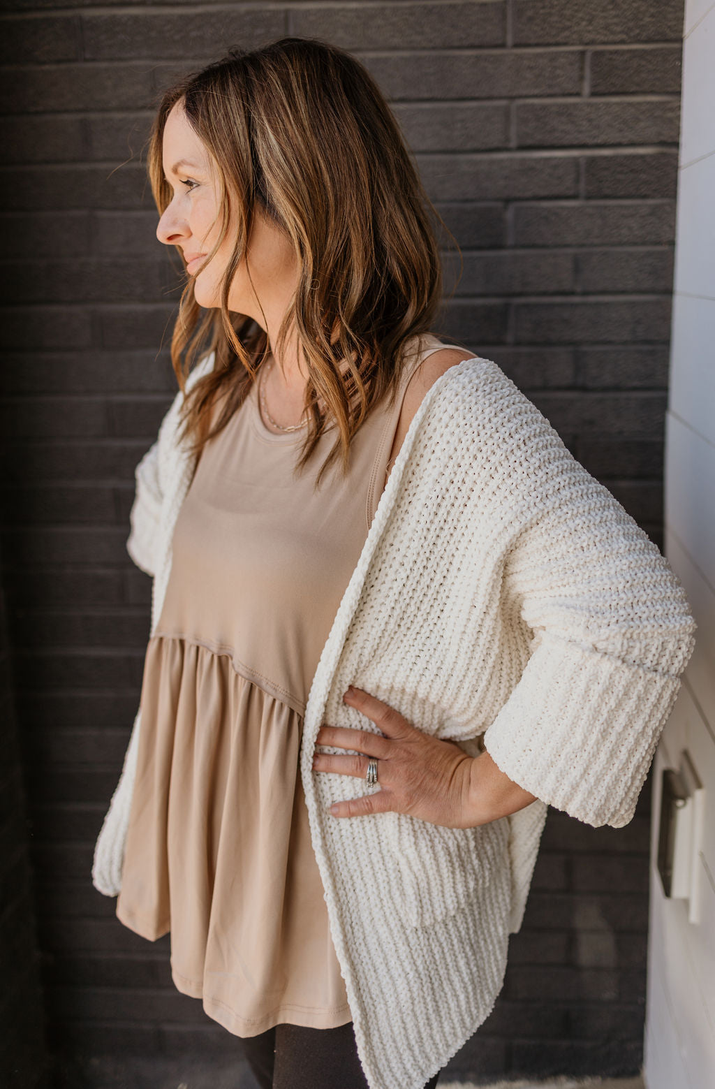Get cozy with our chenille cardigan! This edge-to-edge long sleeve features roomy pockets for all your essentials. Perfect for lounging in style.