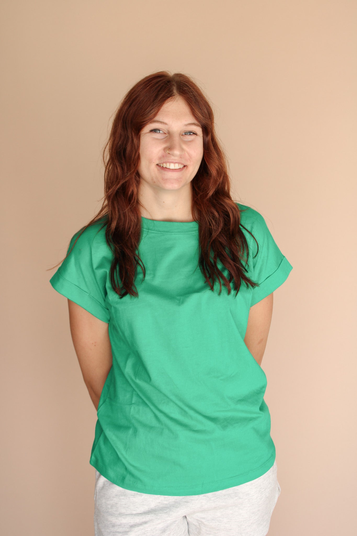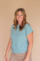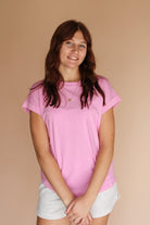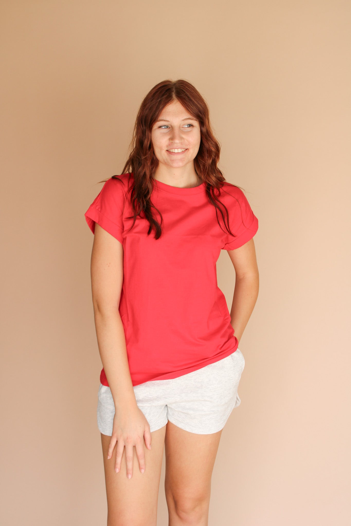 The Sabrina Basic Cotton Tee is your new go-to for effortless style and comfort. Made from good quality cotton, this relaxed-fit tee features folded sleeves for a playful twist on a classic look. Perfect for everyday wear, it combines softness with a flattering fit that keeps you feeling cool and confident all day long.