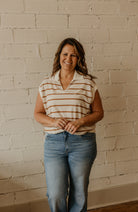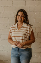 Get ready to turn heads with the Tansie Collared Striped Top! This lightweight, breezy top features a fun striped pattern that adds a pop of personality. The classic collar brings a touch of preppy charm, while the banded bottom gives it a playful, snug fit. Perfect for mixing and matching on sunny days or layering with your favorite jackets, this top promises all-day comfort with a cheeky twist.