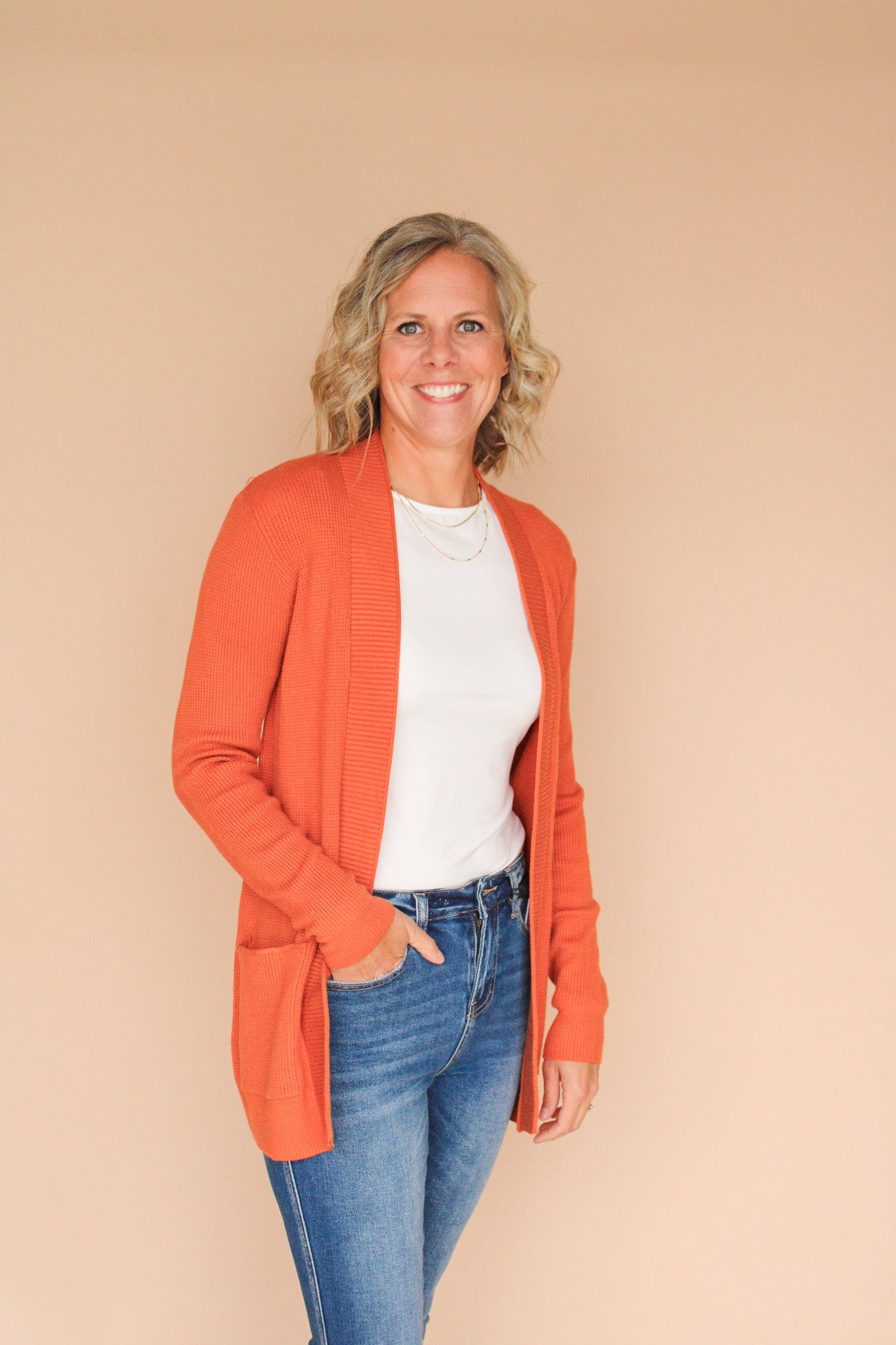 TRICIA WAFFLE OPEN FRONT CARDIGAN