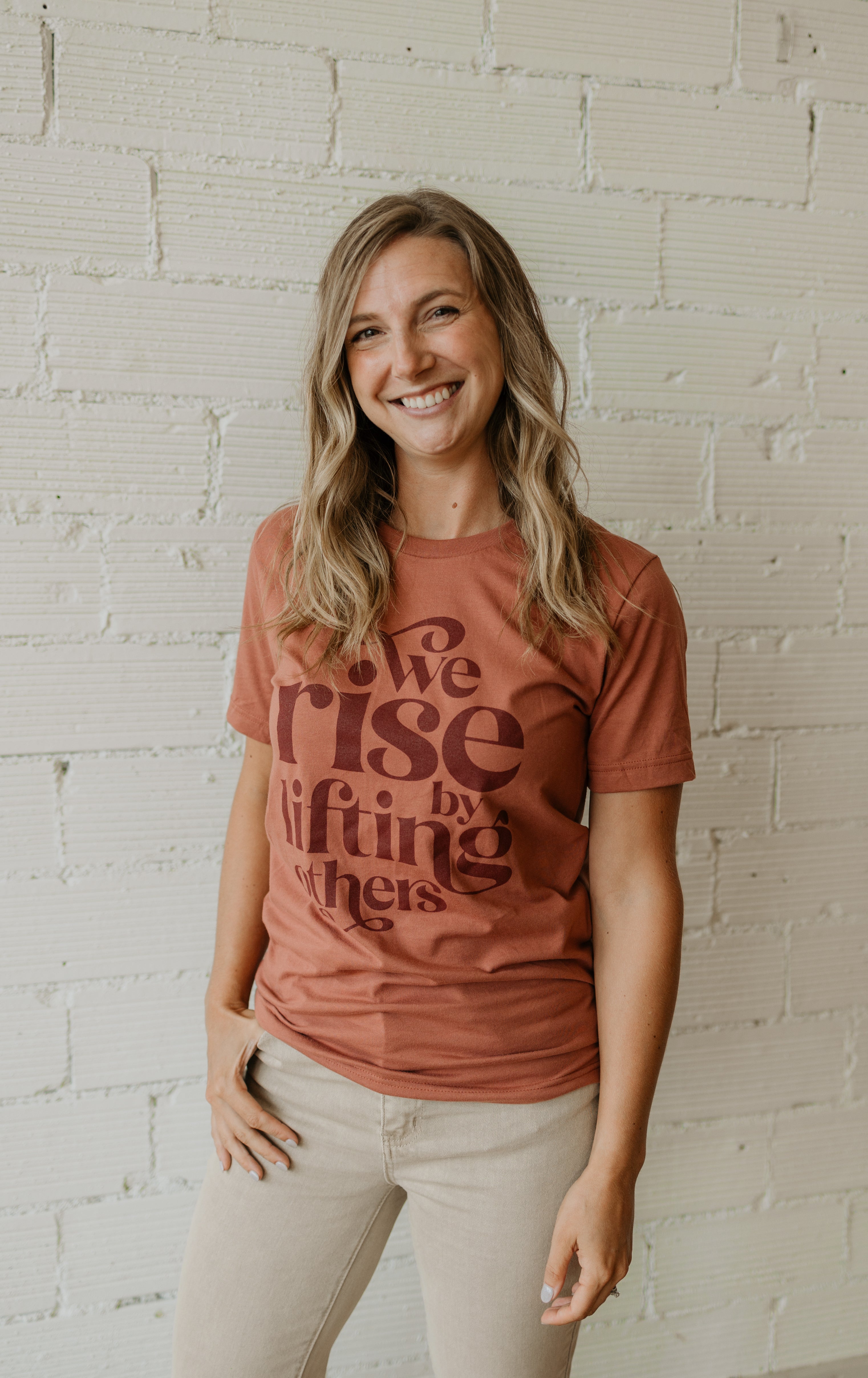 WE RISE BY LIFTING OTHERS REG/CURVY GRAPHIC TEE