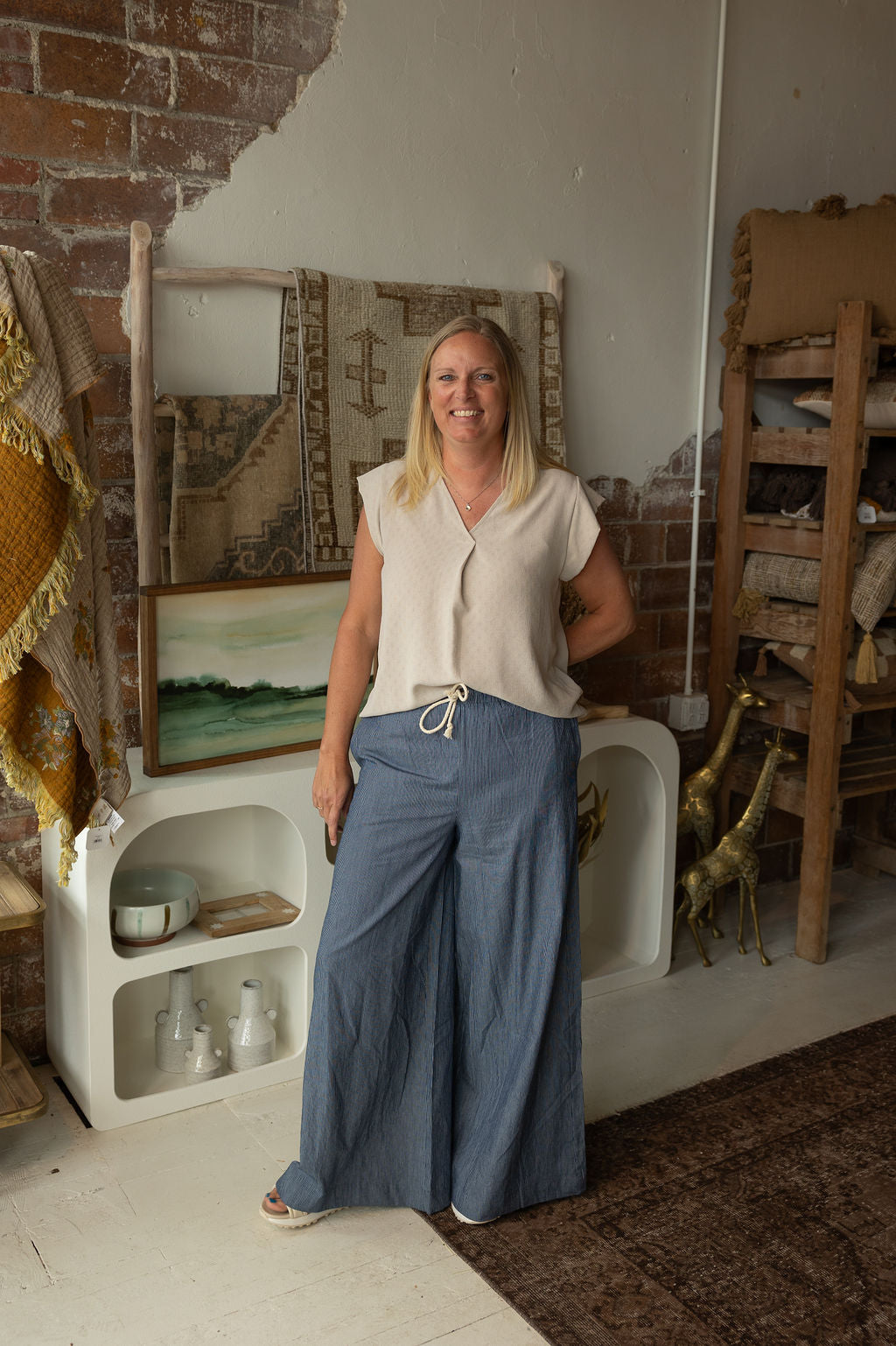 WILLA NAVY BLOUSE WITH FRONT TIE DETAIL
