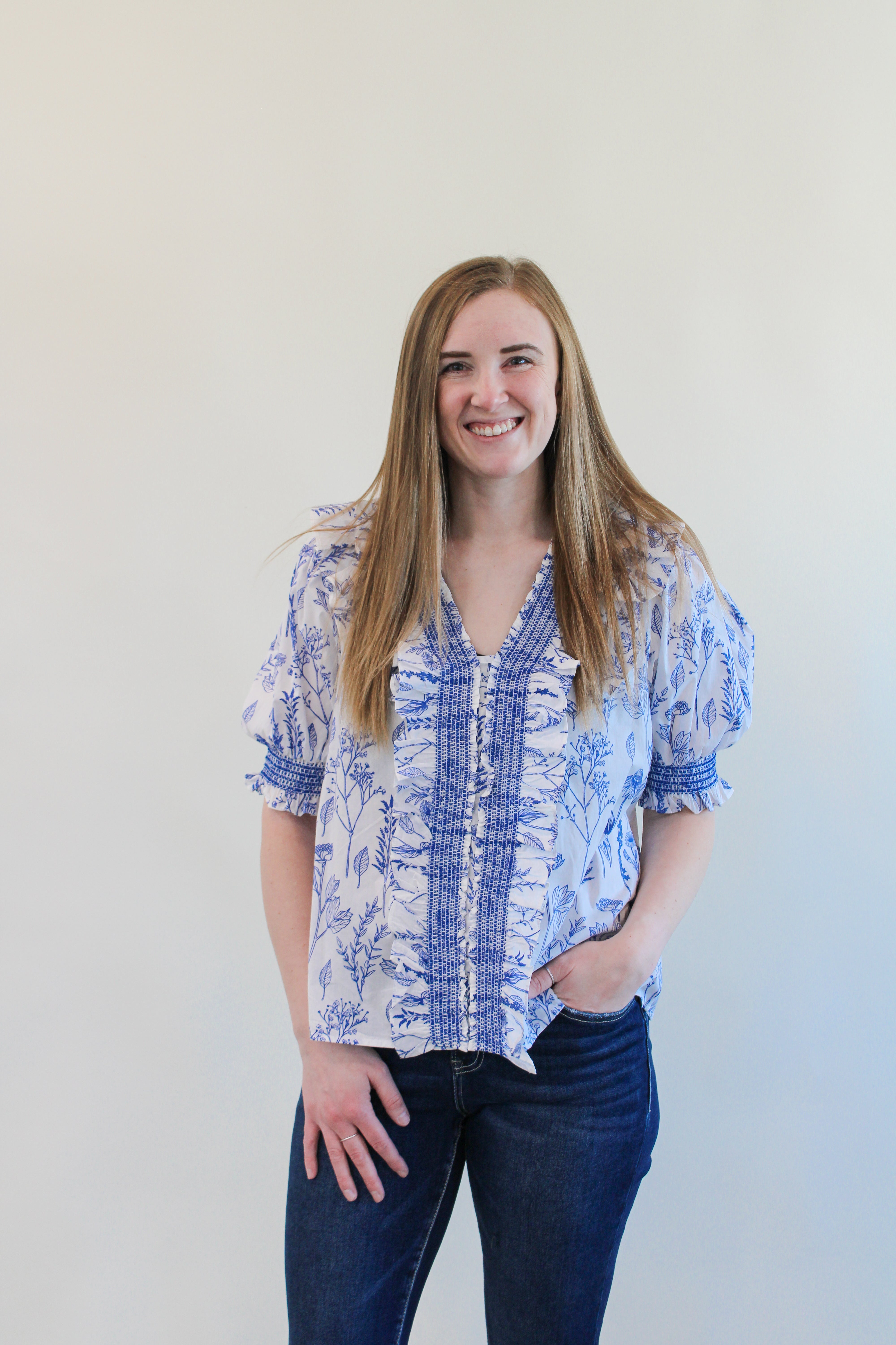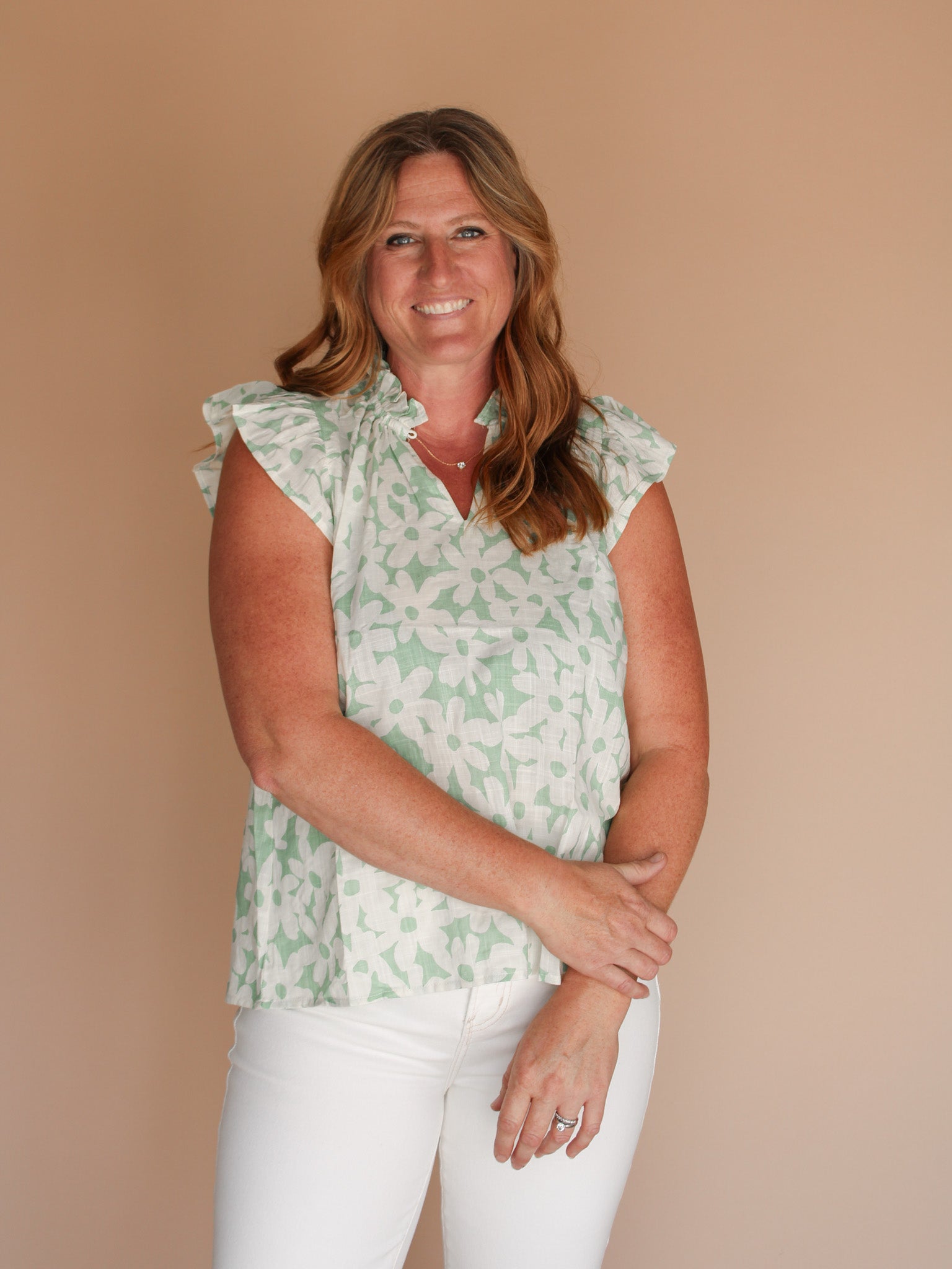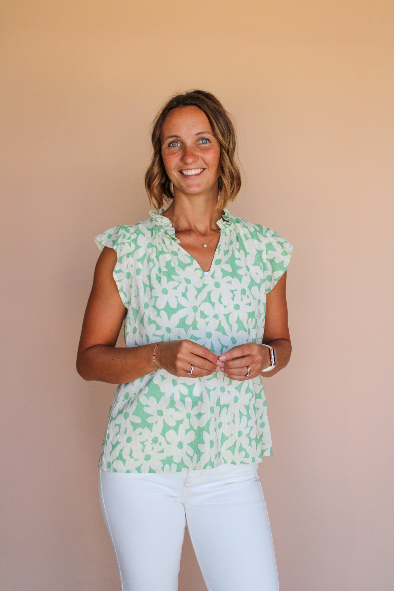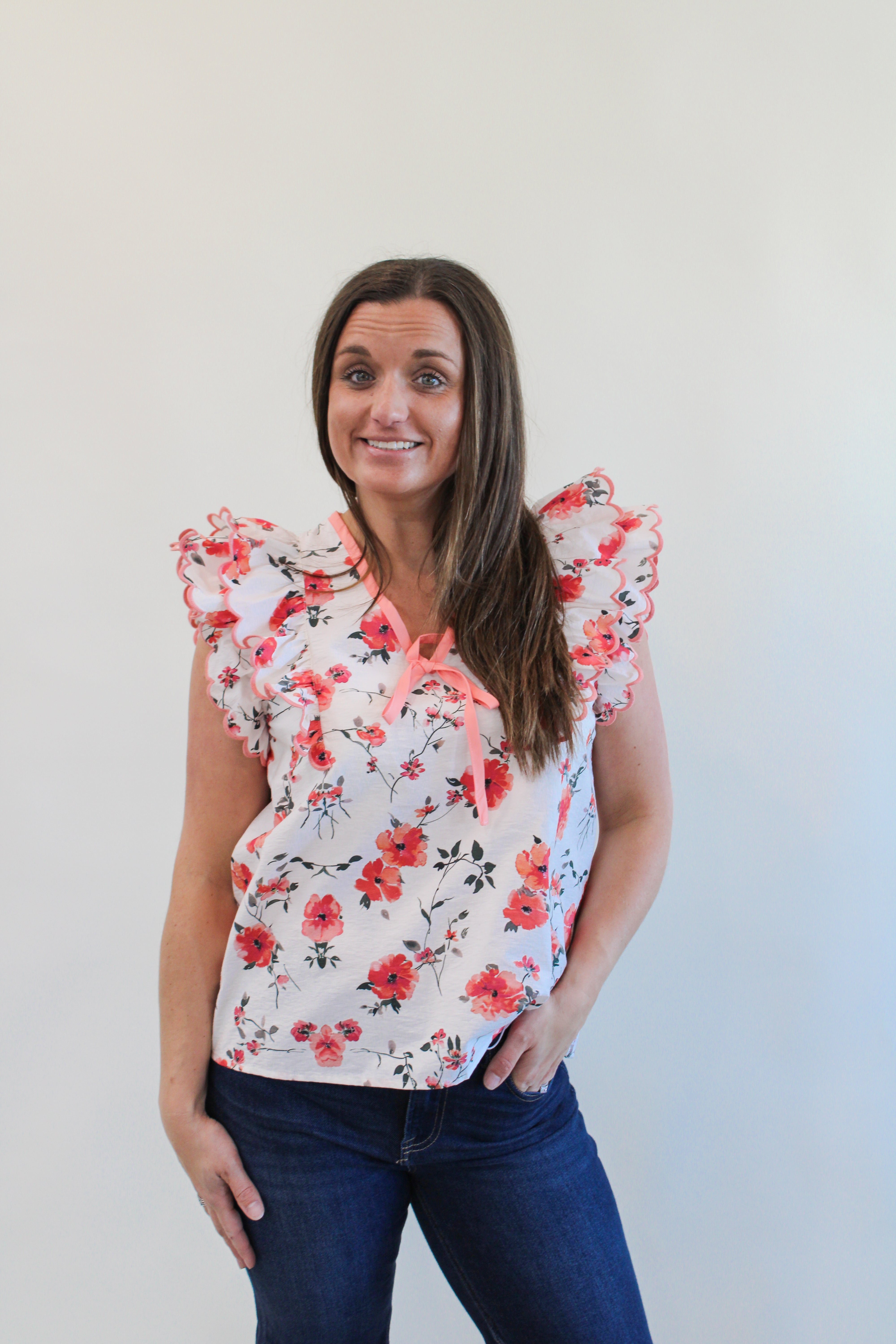 AGGIE FLORAL FLUTTER SLEEVE BLOUSE