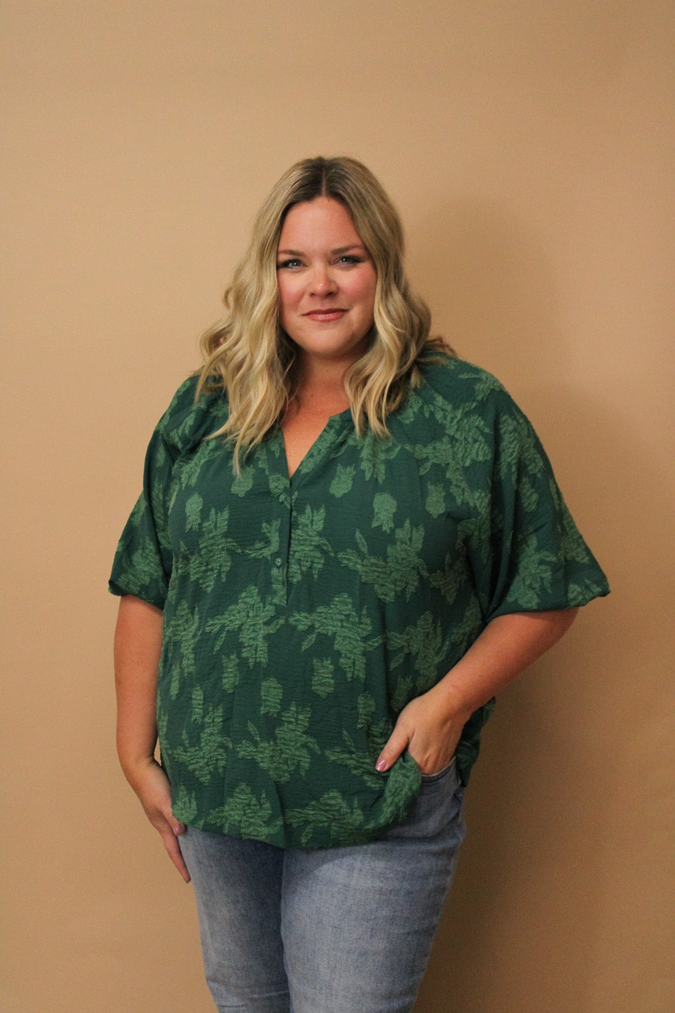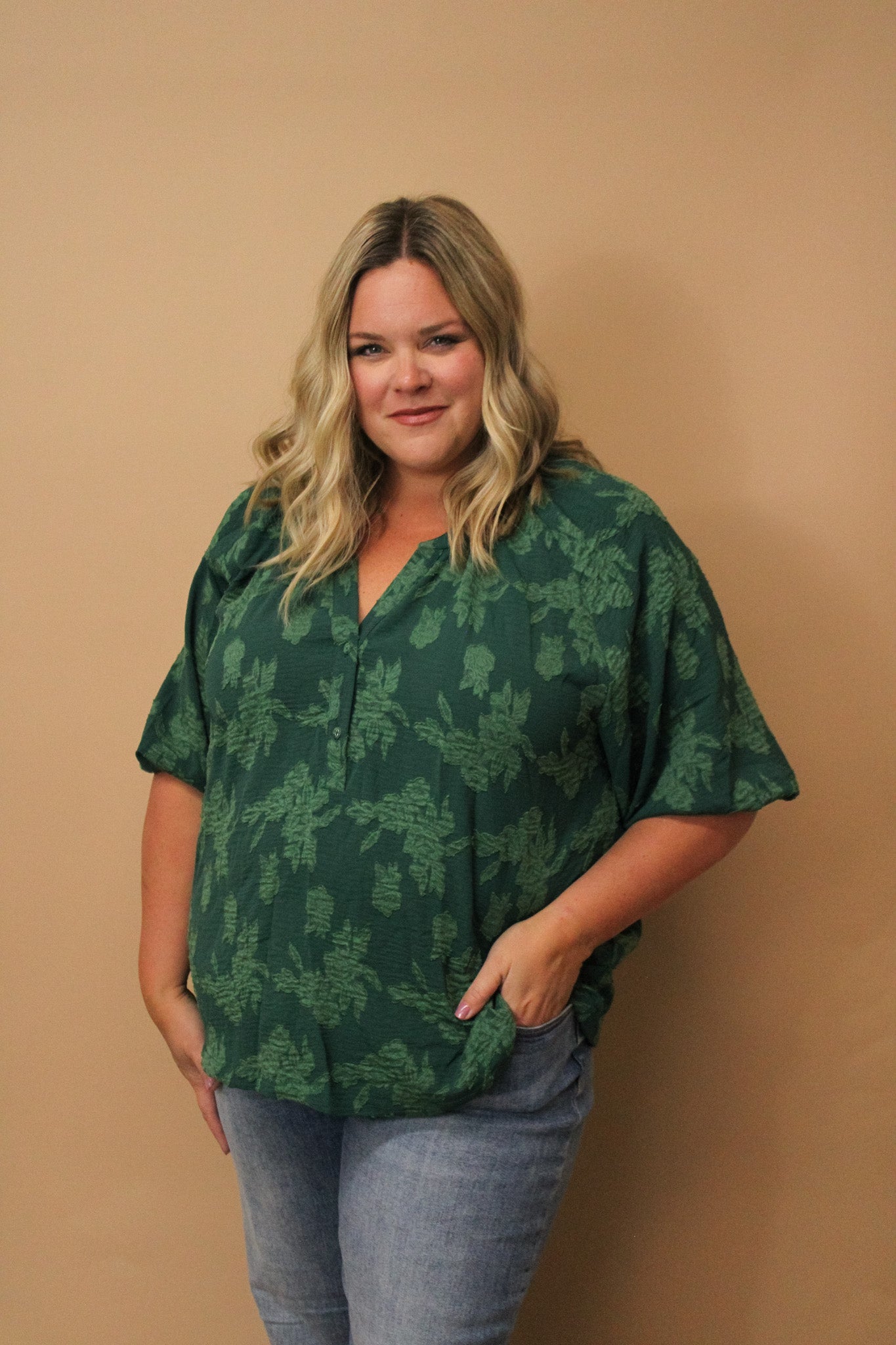 COURTNEY BUBBLE SLEEVE PRINTED TOP
