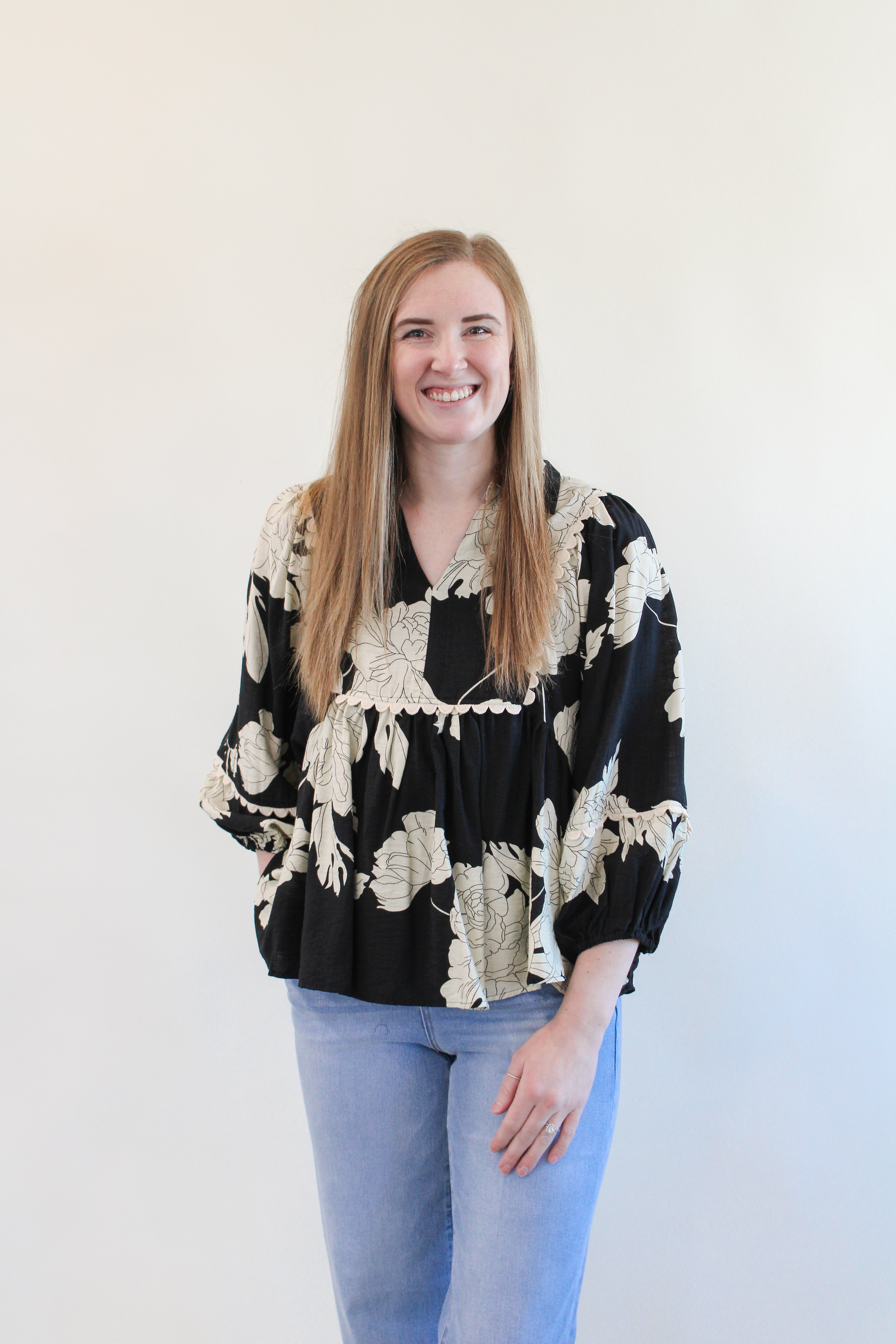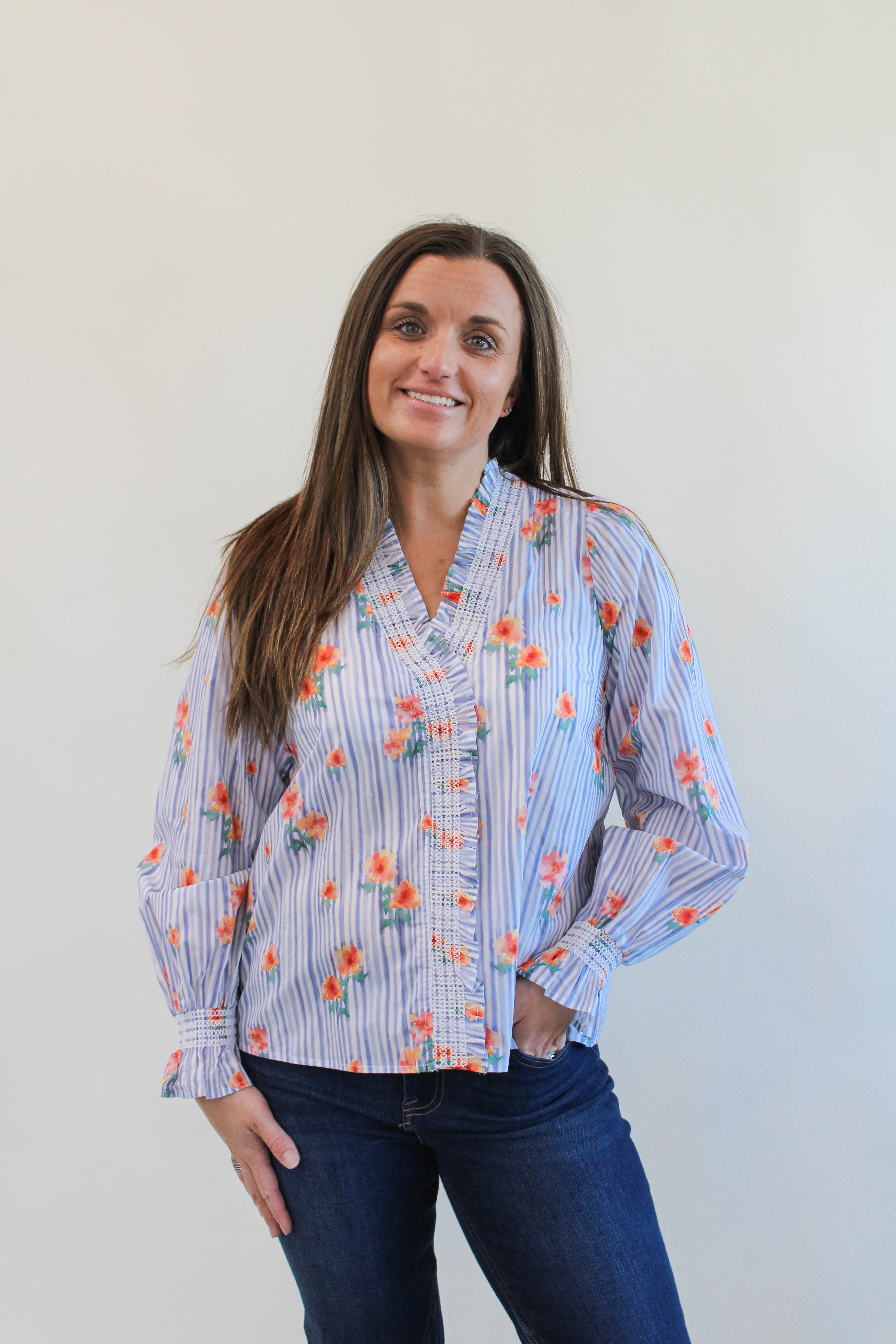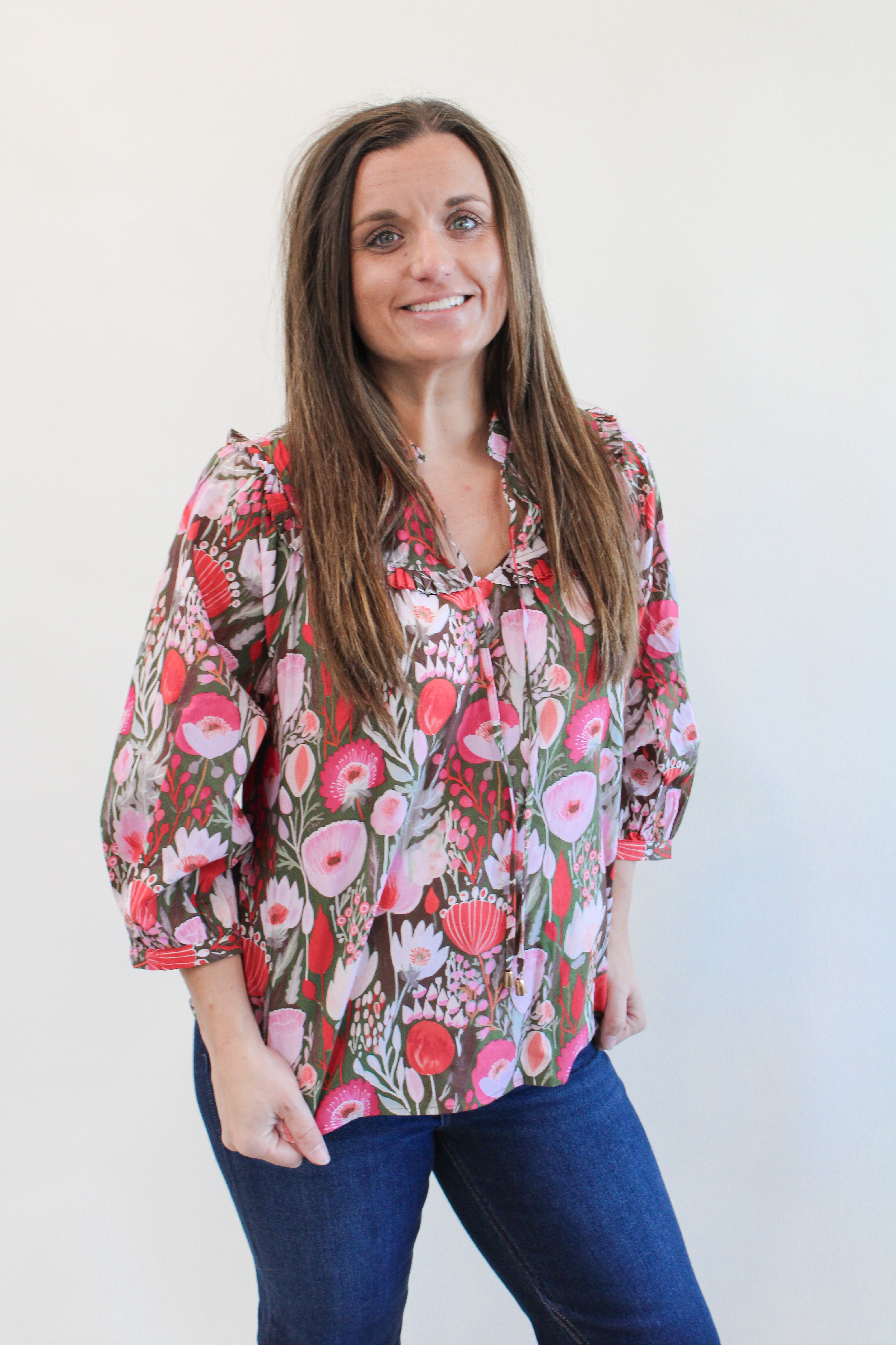 LESLEY FLORAL V-NECK RUFFLE BLOUSE