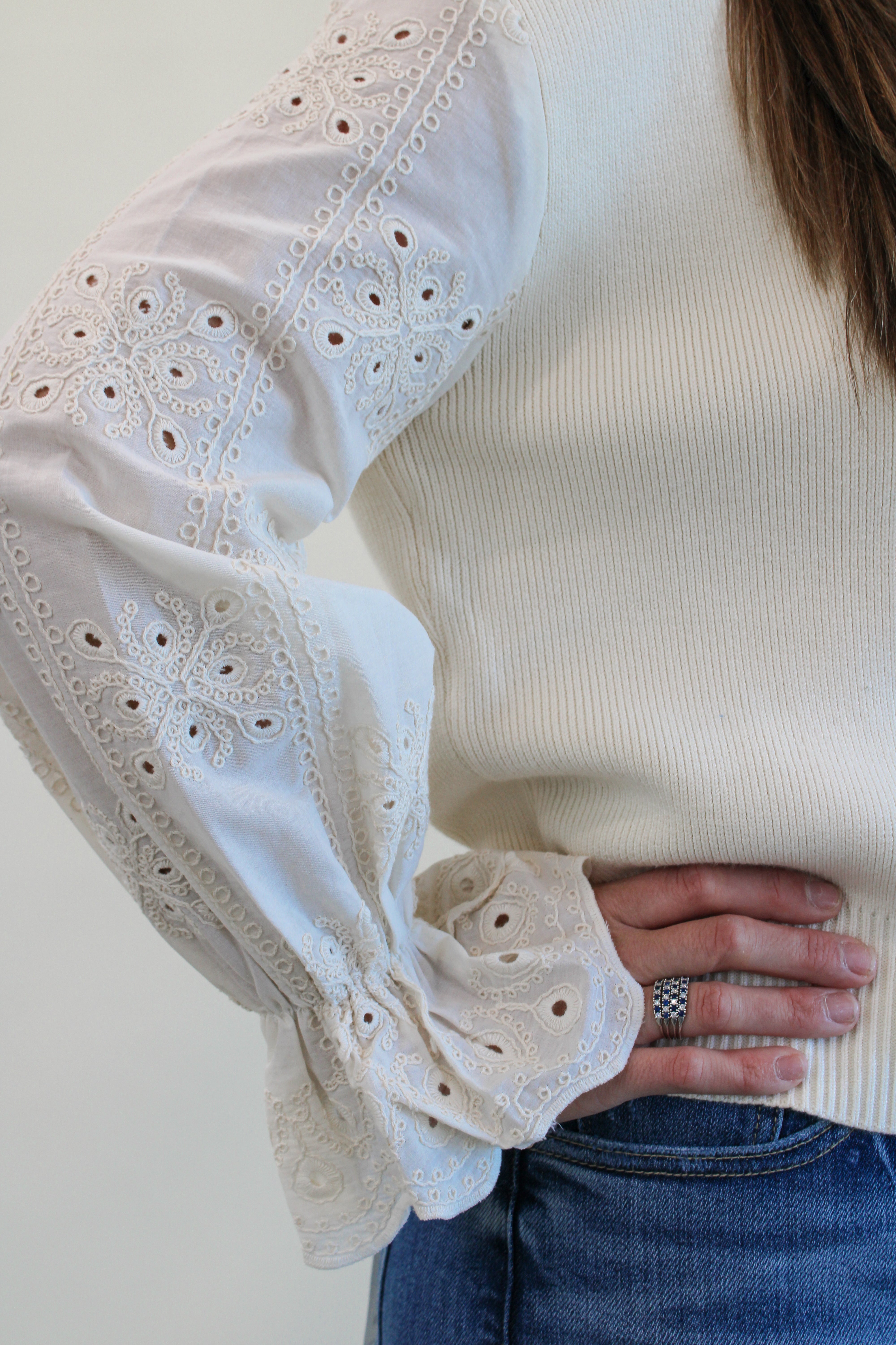KRISTA EYELET RUFFLE SLEEVE SWEATER