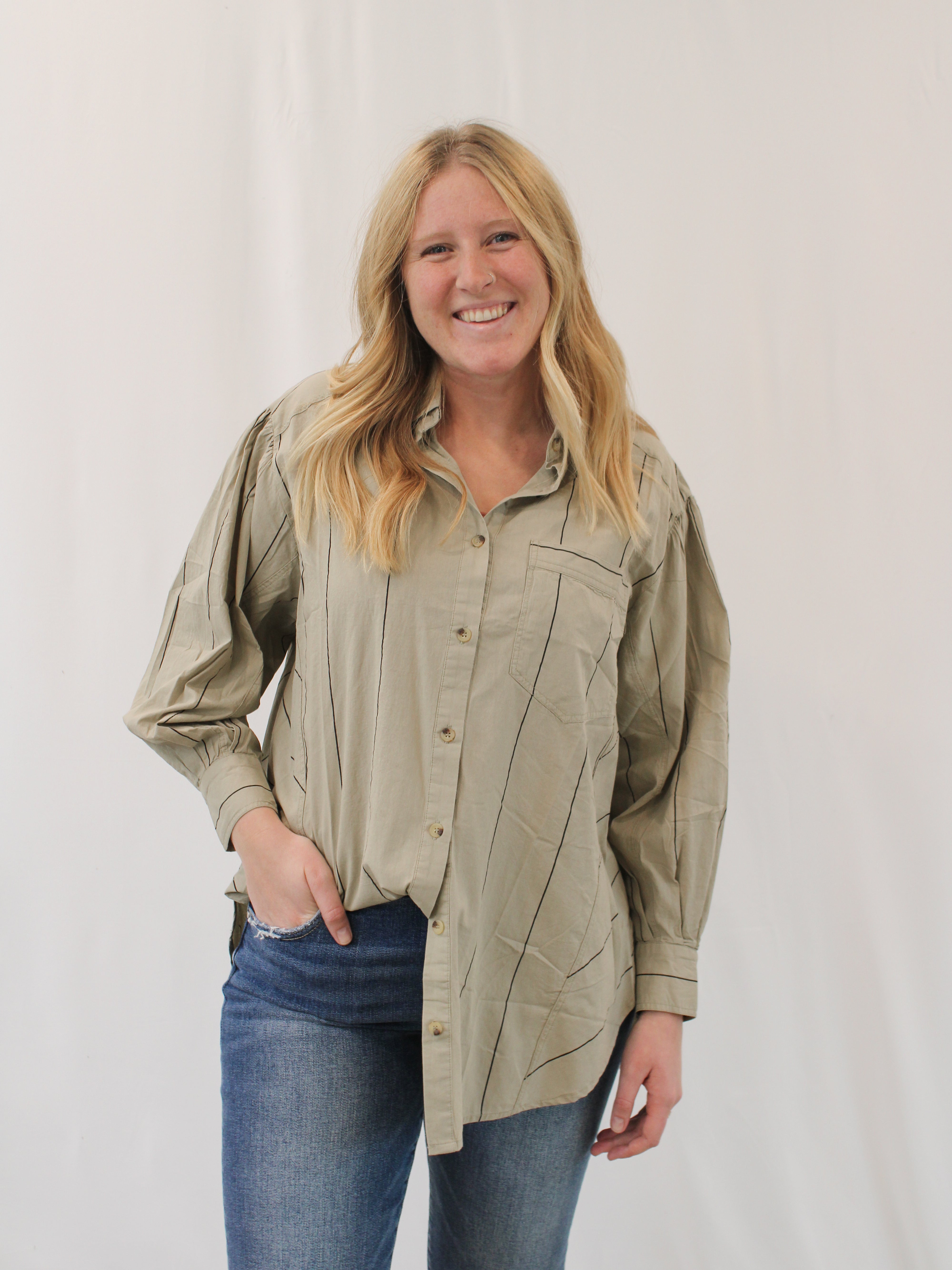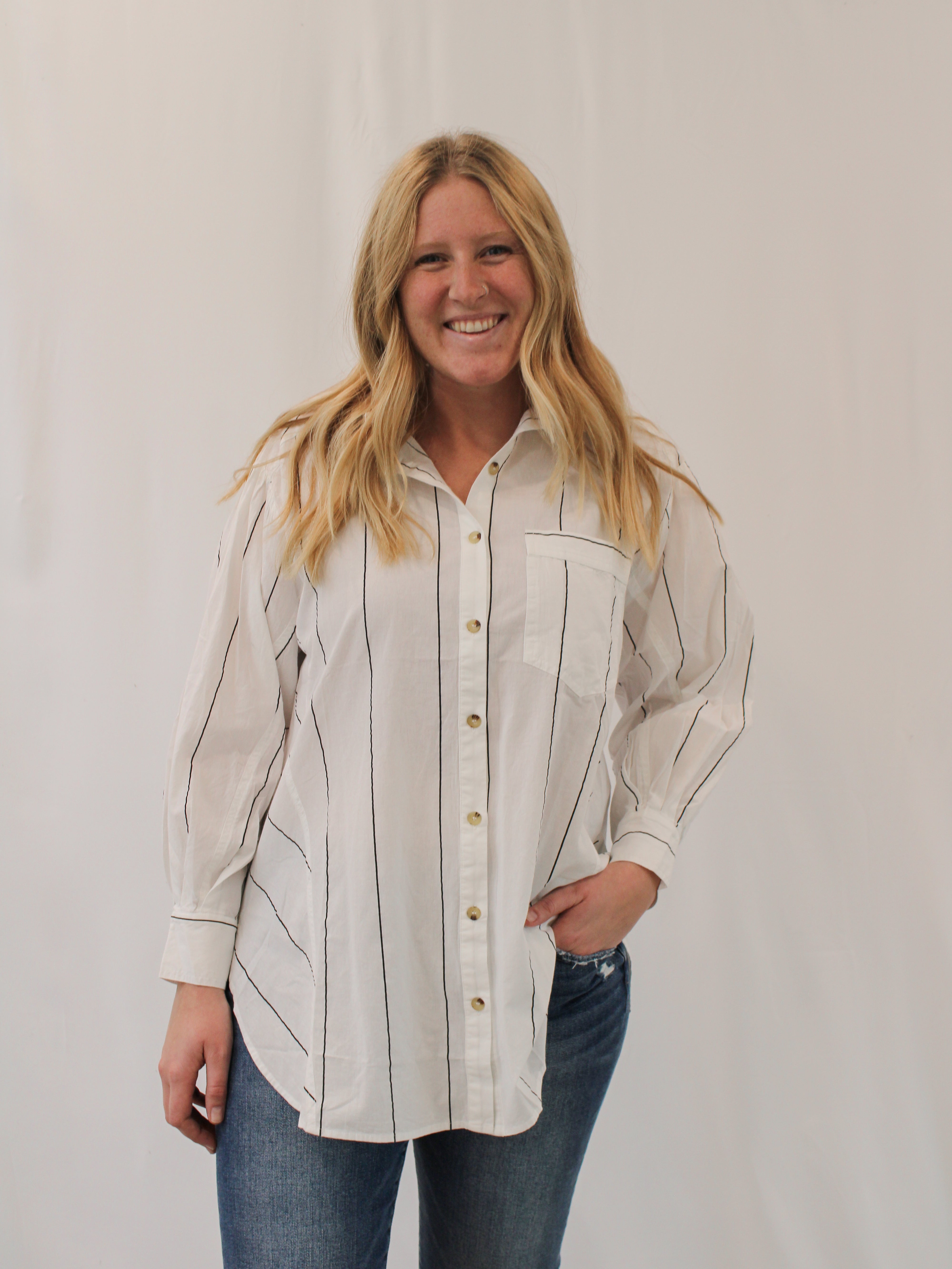 VERONICA CREAM BLOUSE WITH BLACK STITCHING