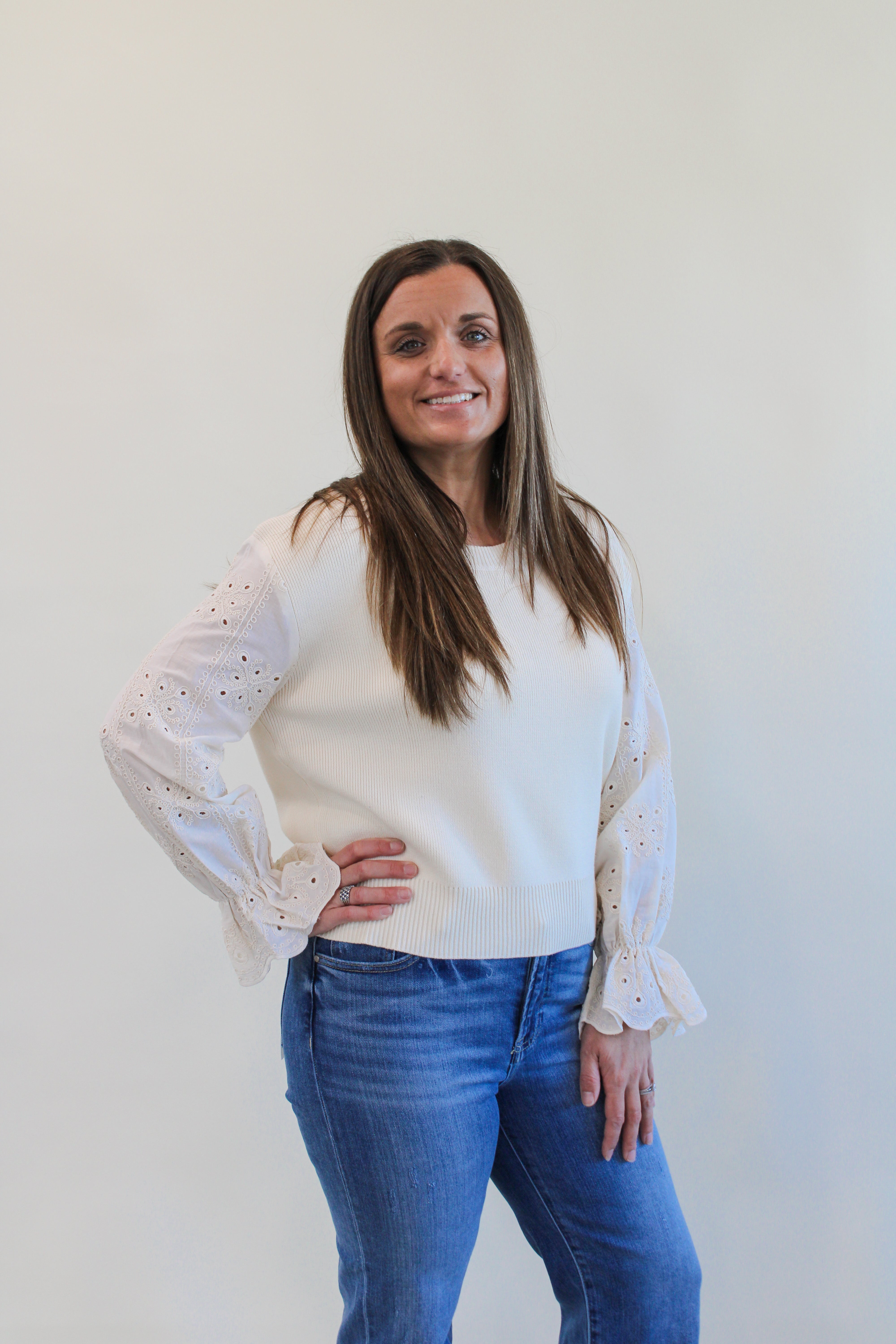 KRISTA EYELET RUFFLE SLEEVE SWEATER
