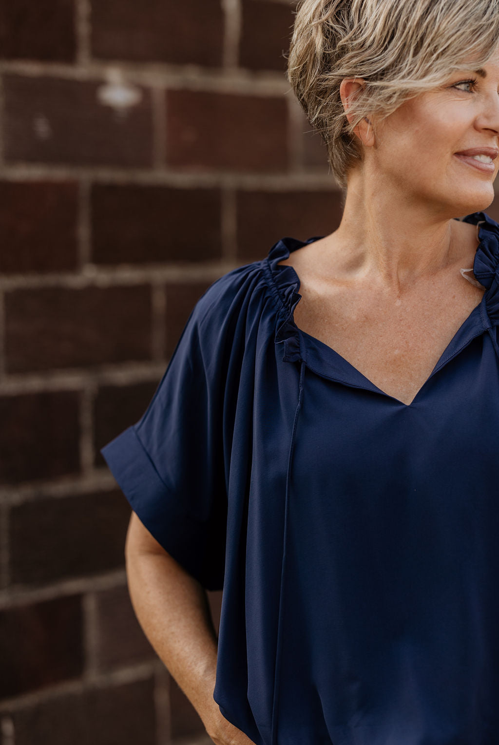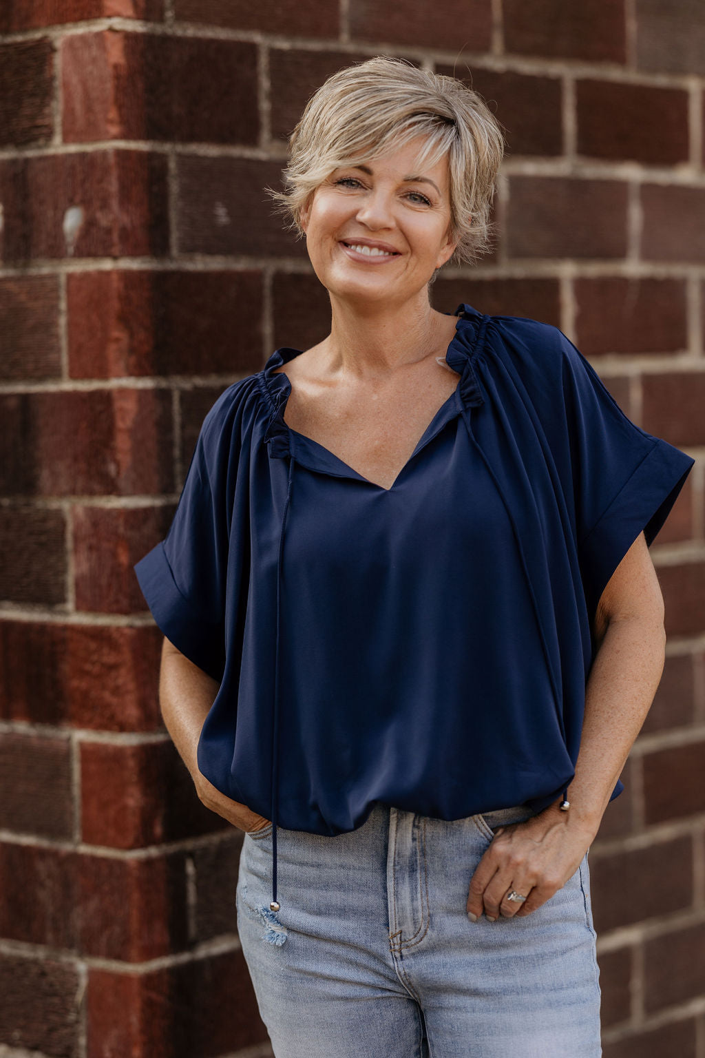 MARYN NAVY BLOUSE WITH TIE FRONT DETAIL