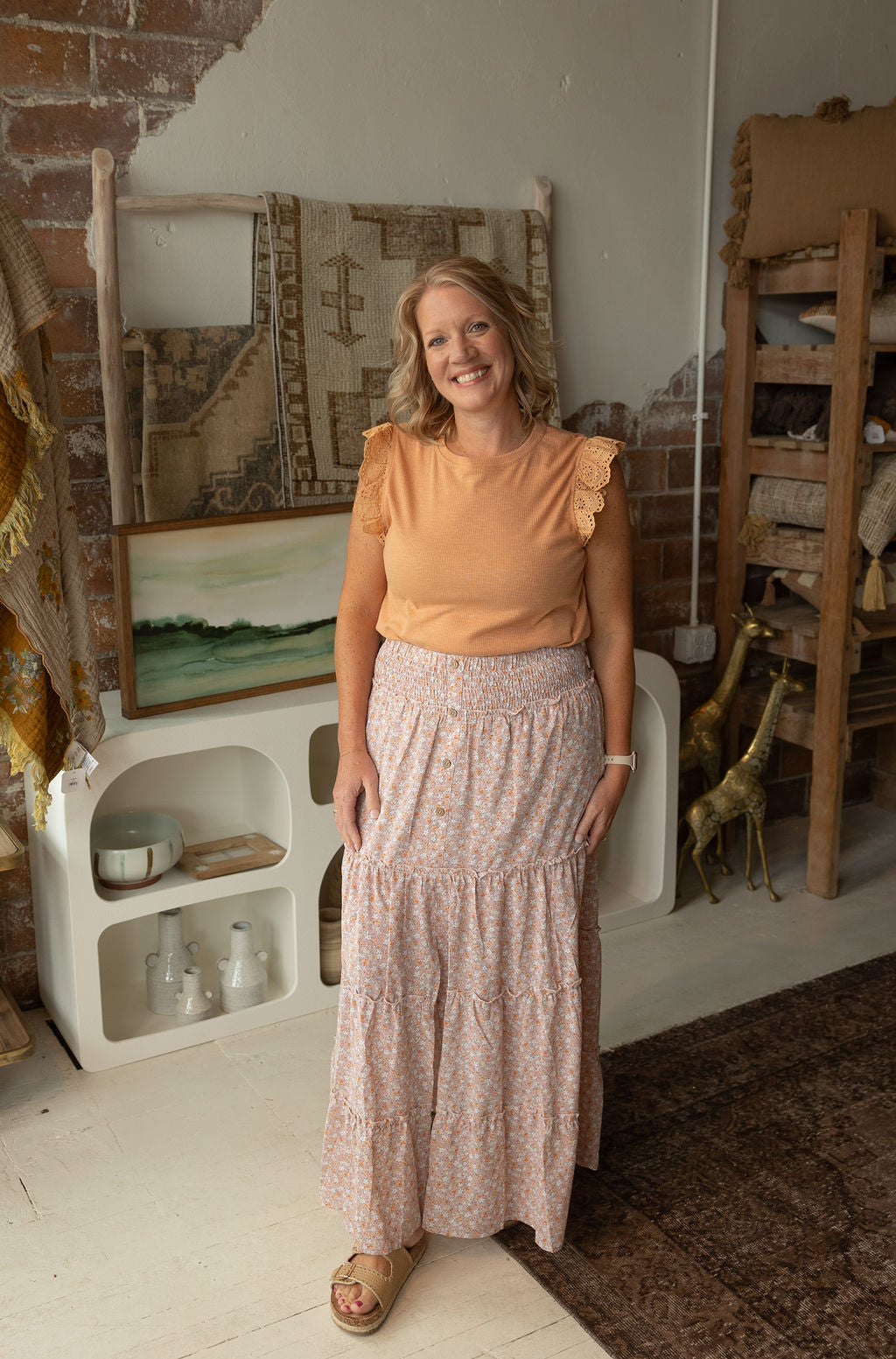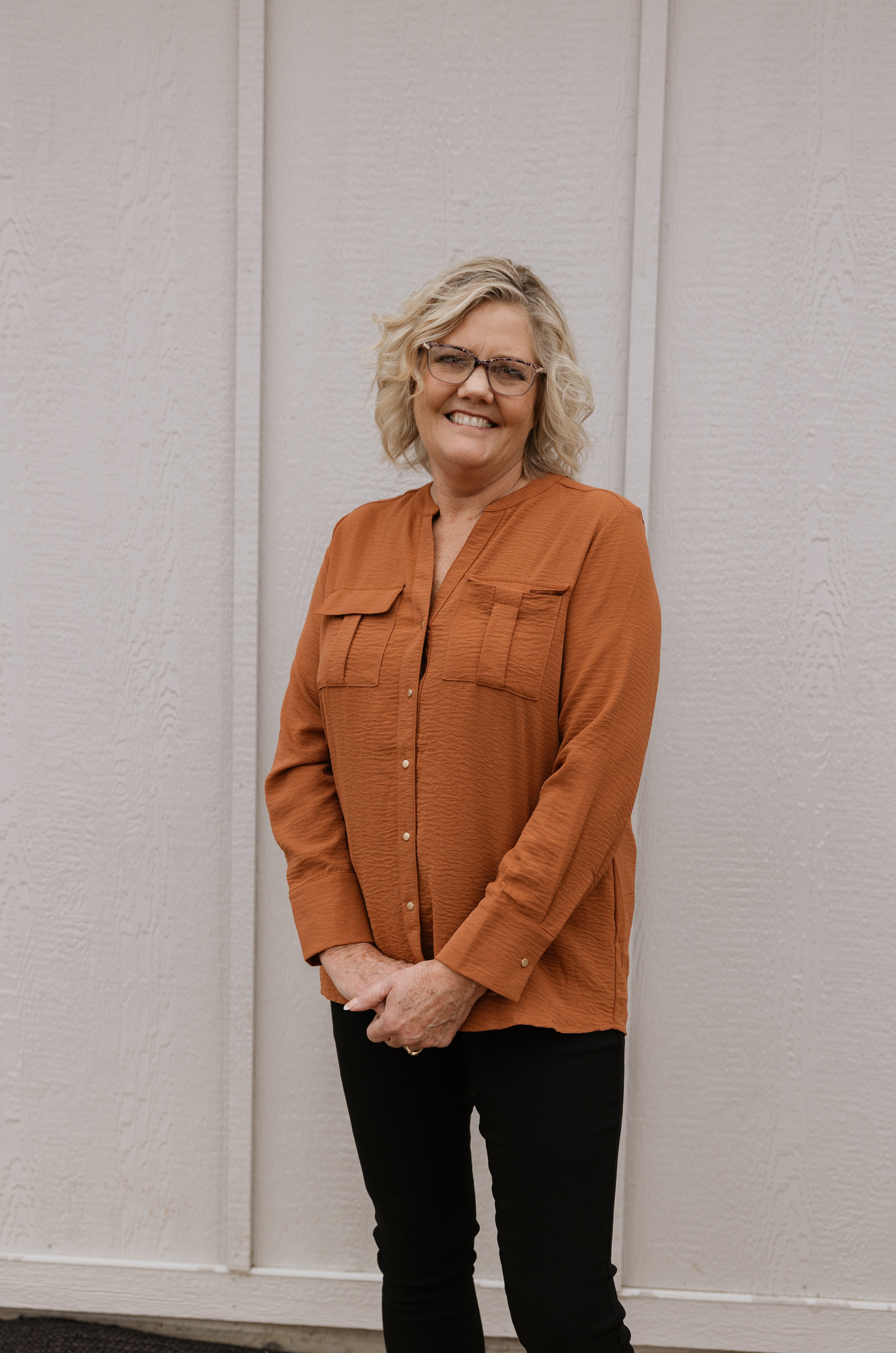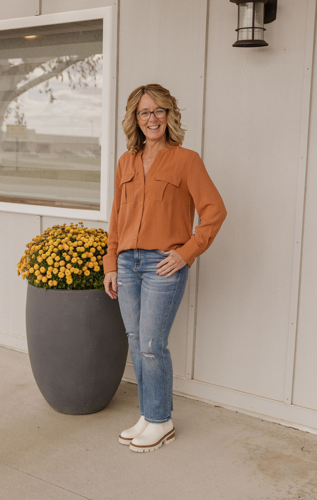 CAITLYN BUTTON DOWN CAMEL BLOUSE