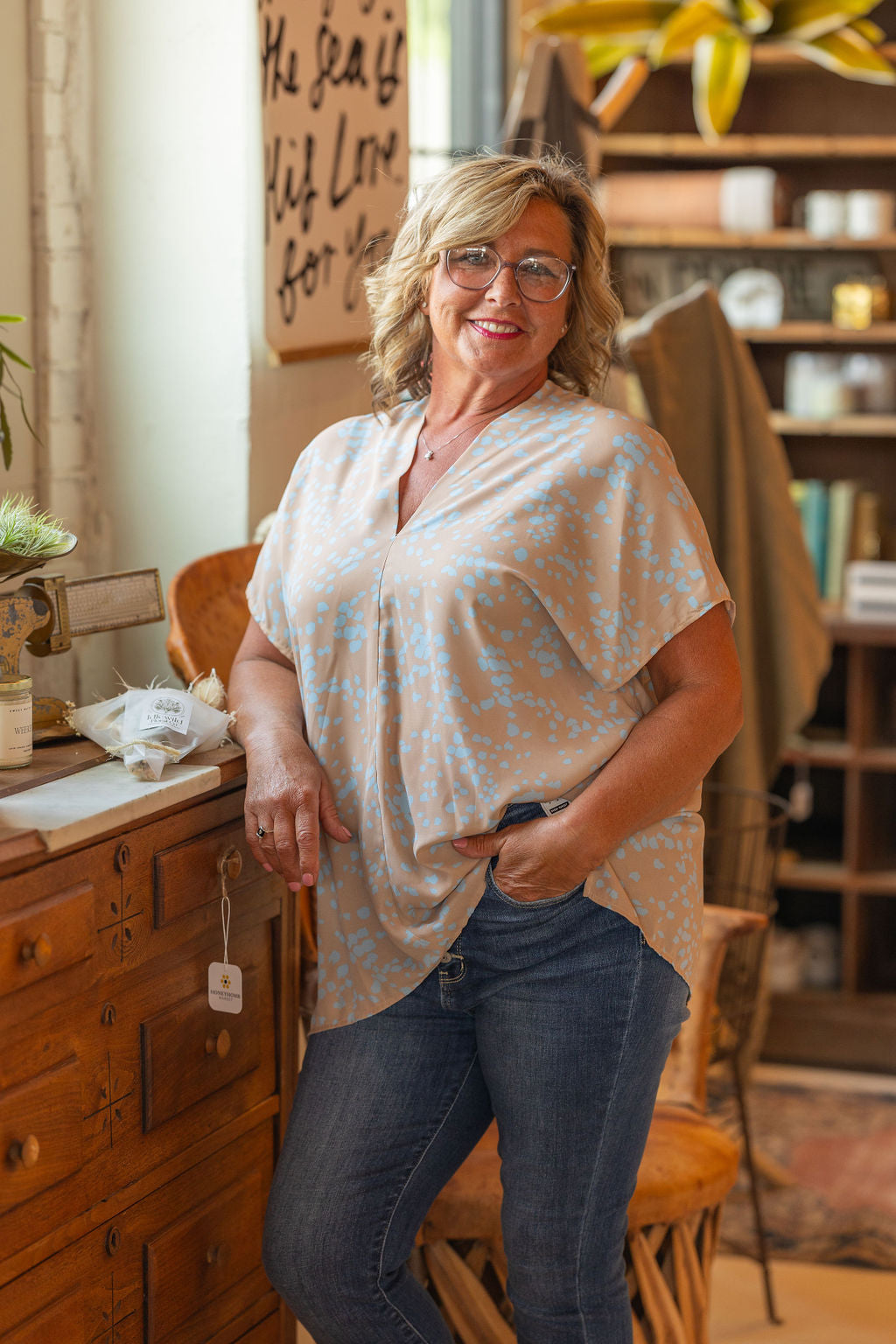 WILLOW ABSTRACT VNECK BLOUSE