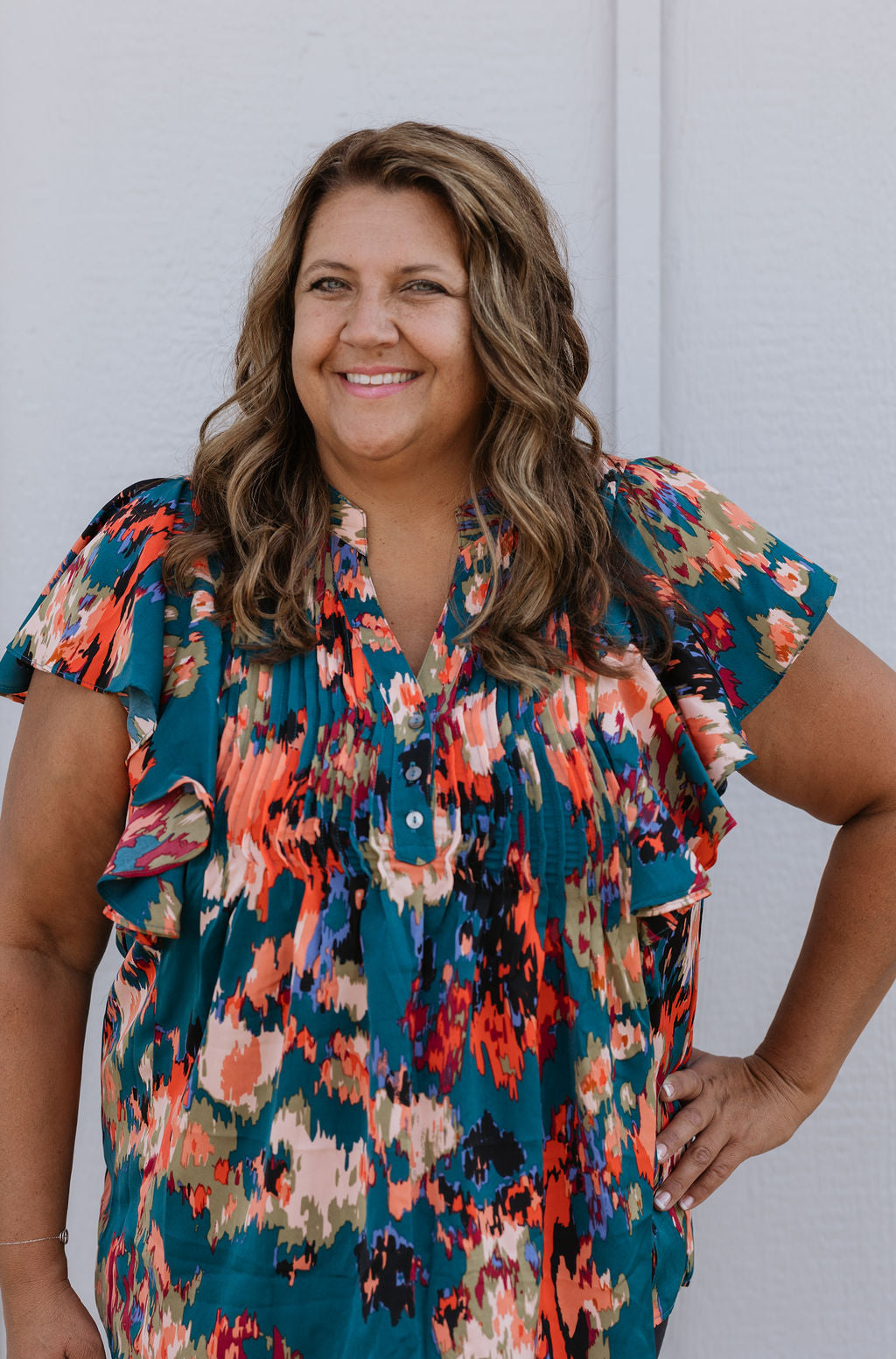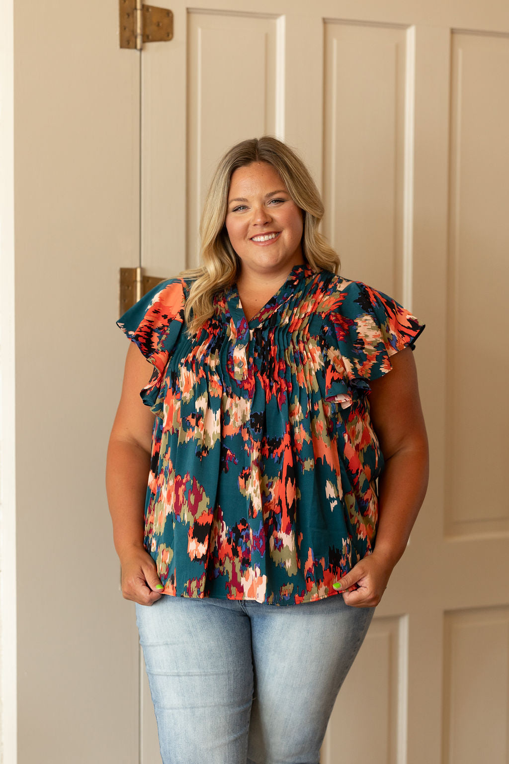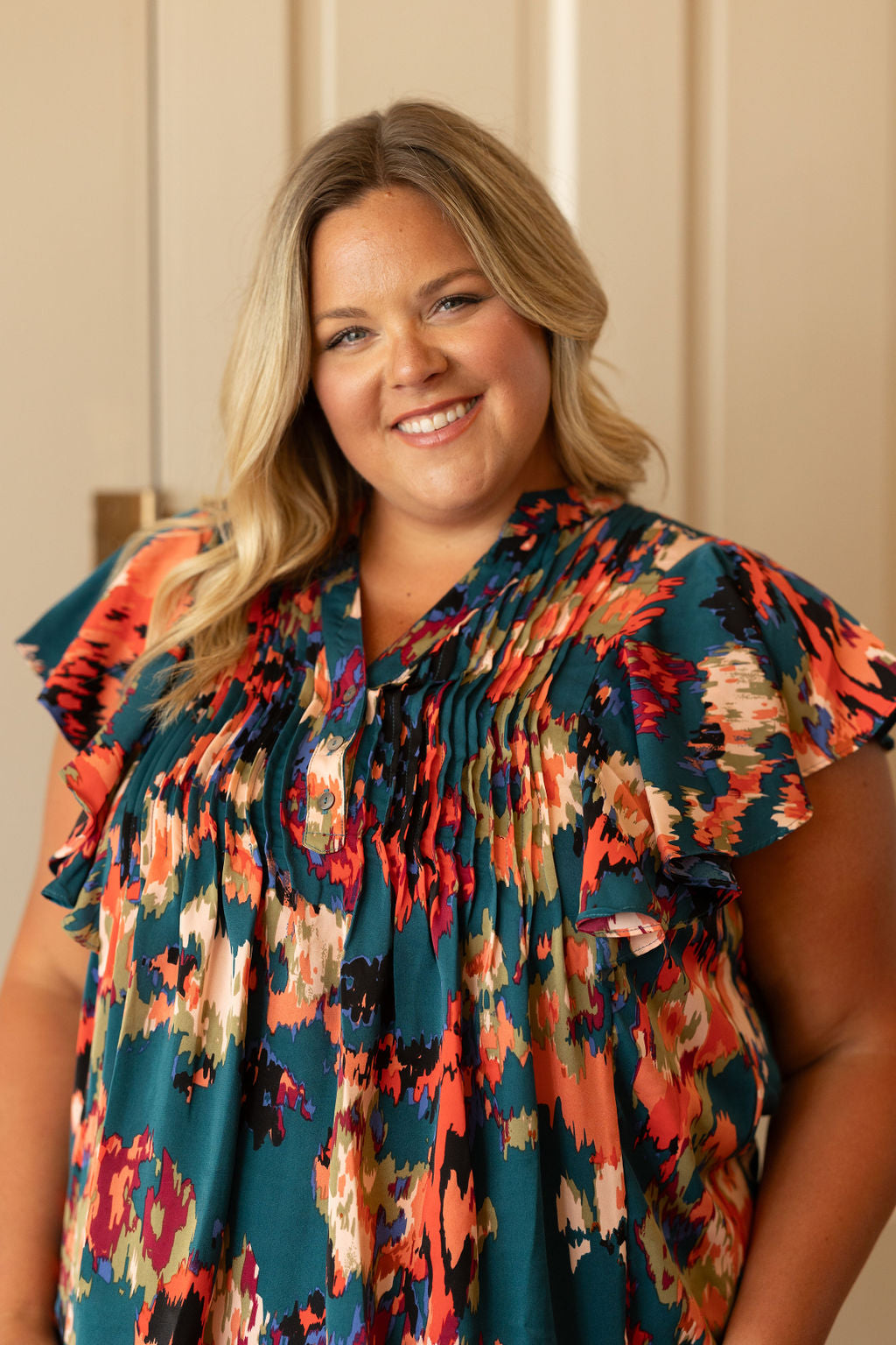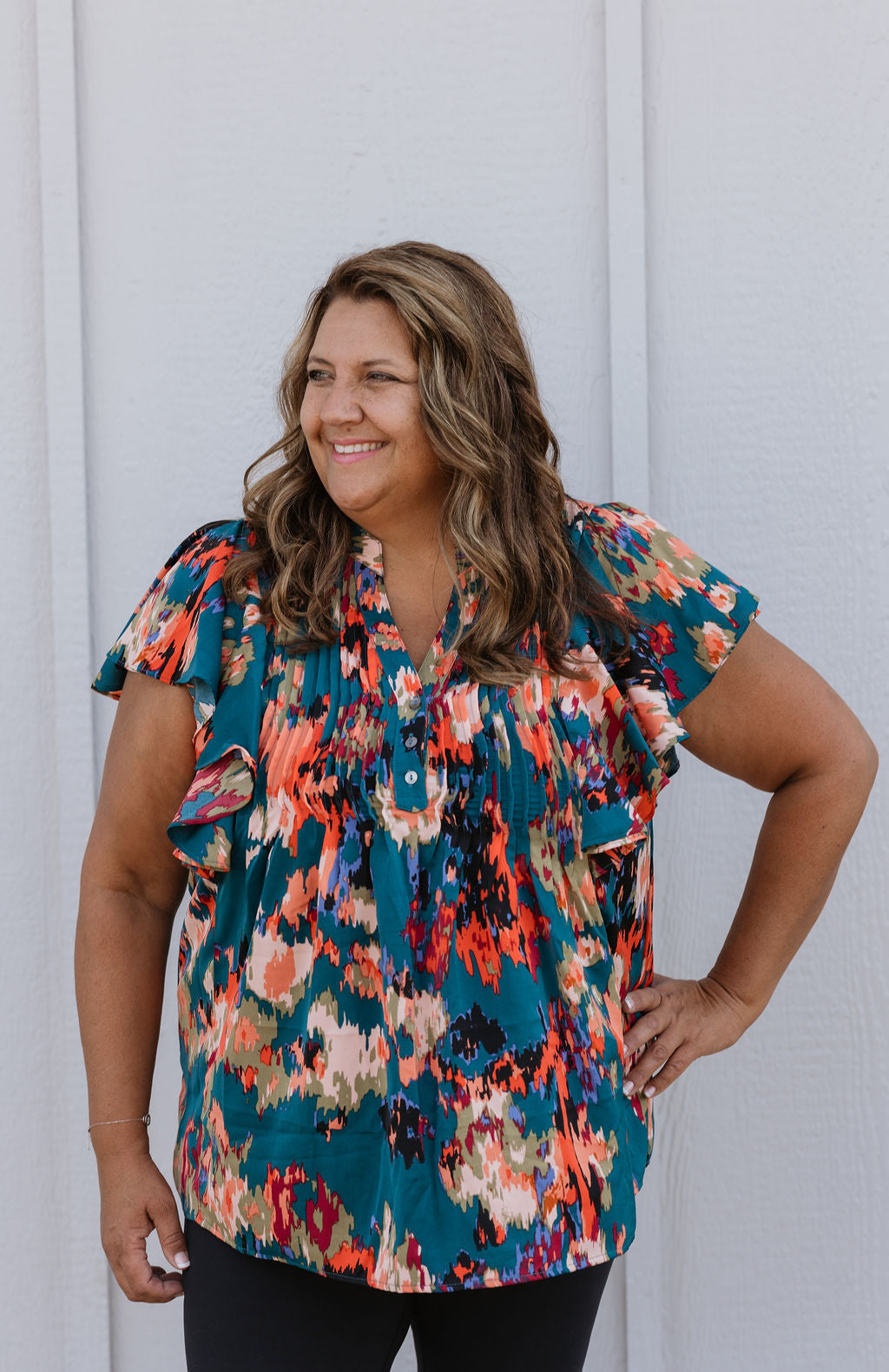 LARISA CURVY/REG FLORAL RUFFLE DETAIL BLOUSE