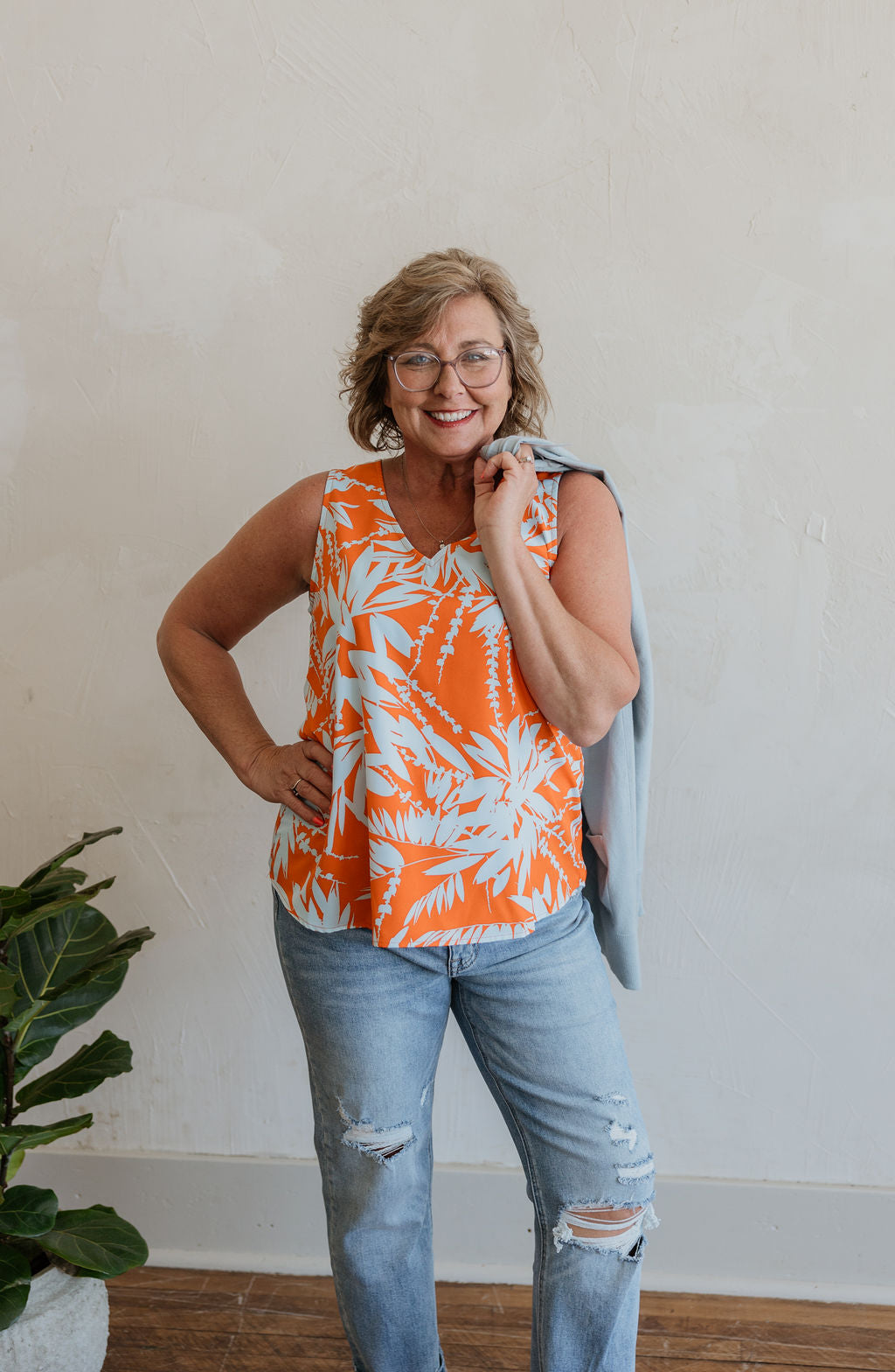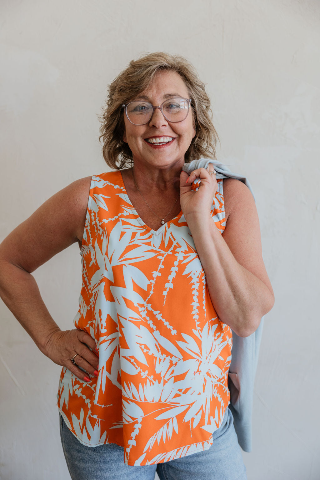 LEANDRA ORANGE AND BLUE BLOUSEY VNECK TANK TOP