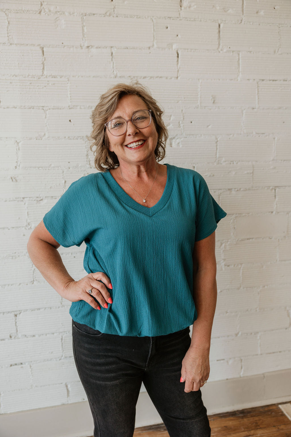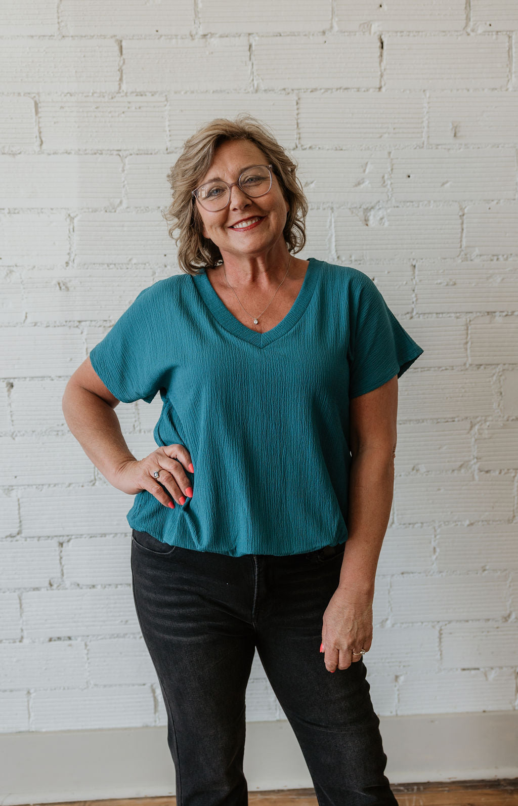 CATHERINE TEXTURED PARACHUTE VNECK BLOUSE 3 COLOR OPTIONS